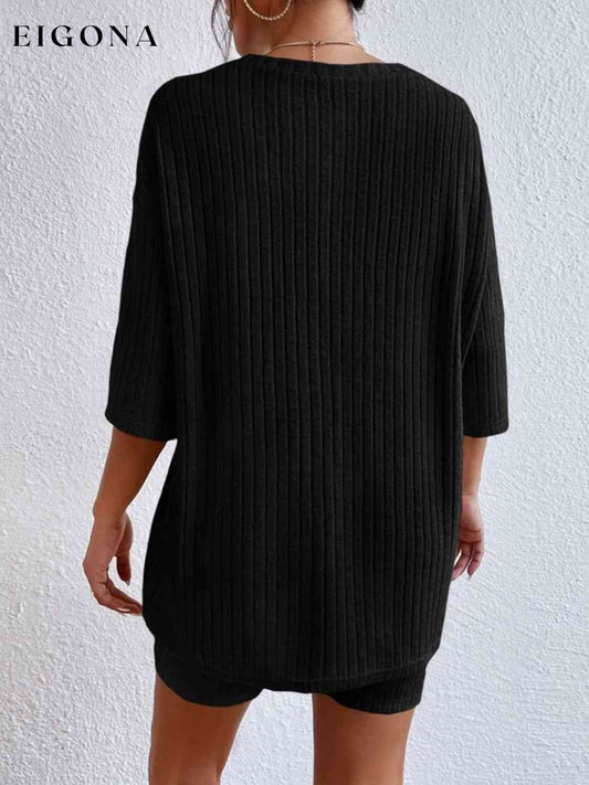 Basic Bae-knappet langermet topp og shortssett, loungewear-sett