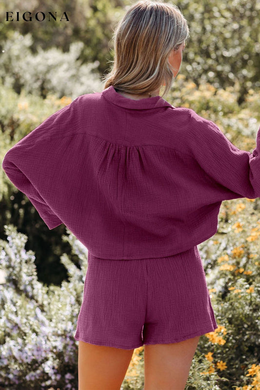 Teksturert Dolman Sleeve Cropped skjorte og shortssett