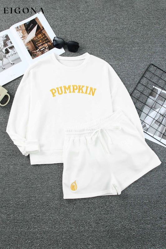 Hvit PUMPKIN Flocking Graphic Pullover Sweatshirt and Shorts Set