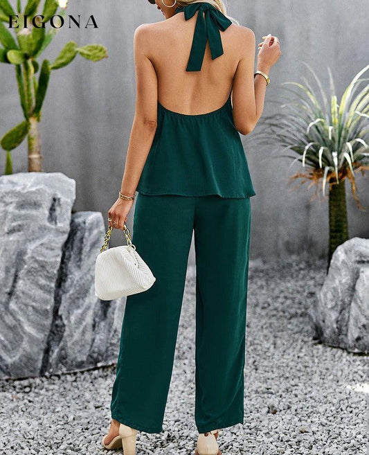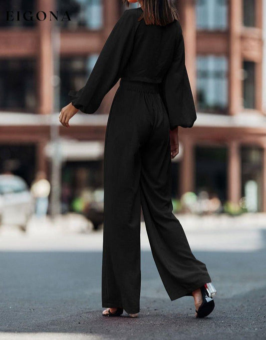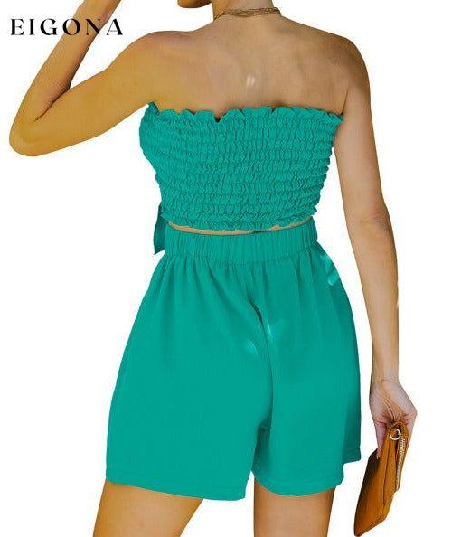 Knyt Front Cropped Top og Smocked Wide Leg Pants Set