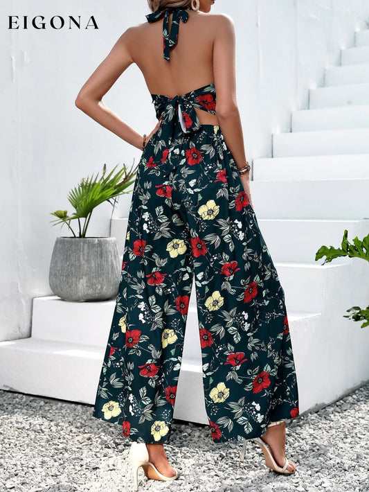 Floral Tie Skulder Topp og Tiered Maxi Skjørt Sett