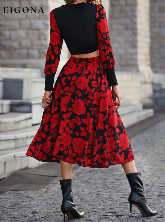 Rundhalset lanternearm med blomstertrykk topp og skjørtsett