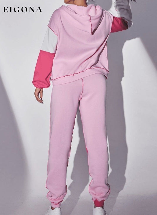 Eksponerte sømmer Color Block hettegenser og buksesett