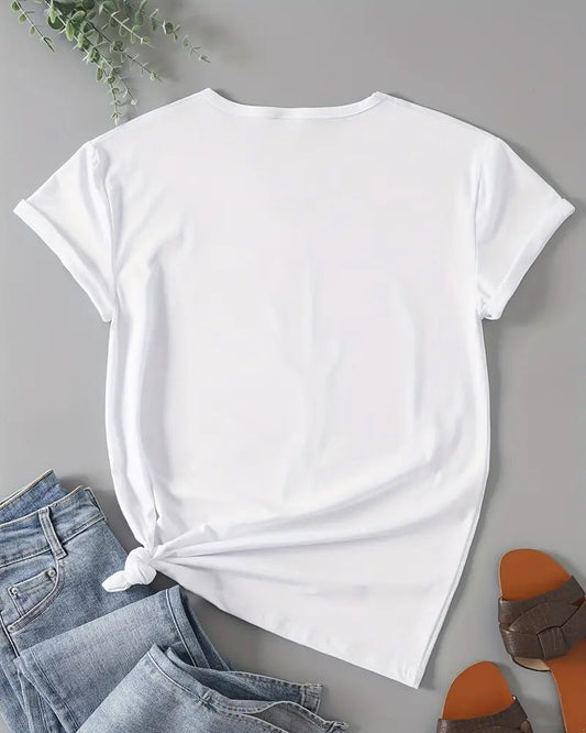 Casual Short Sleeve HEAVEN Print V Neck T-Shirt