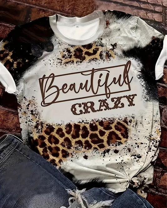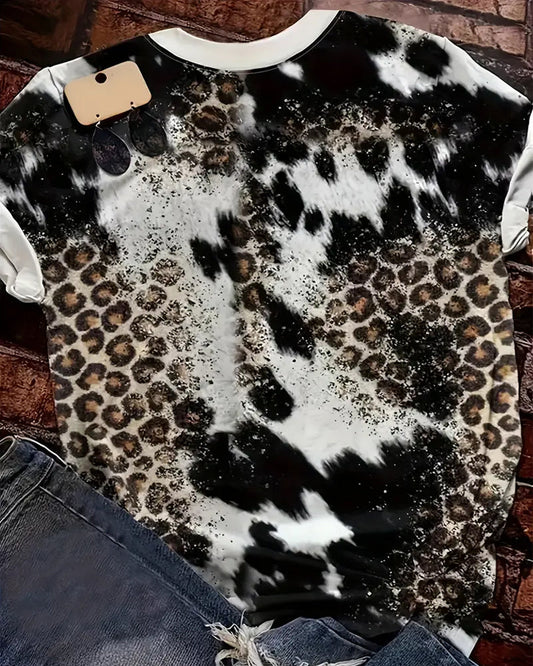 Vibrant Leopard & Graphic Print Crew Neck T-Shirt