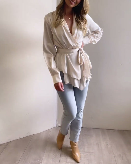 Enkel ensfarget elegant knytebluse