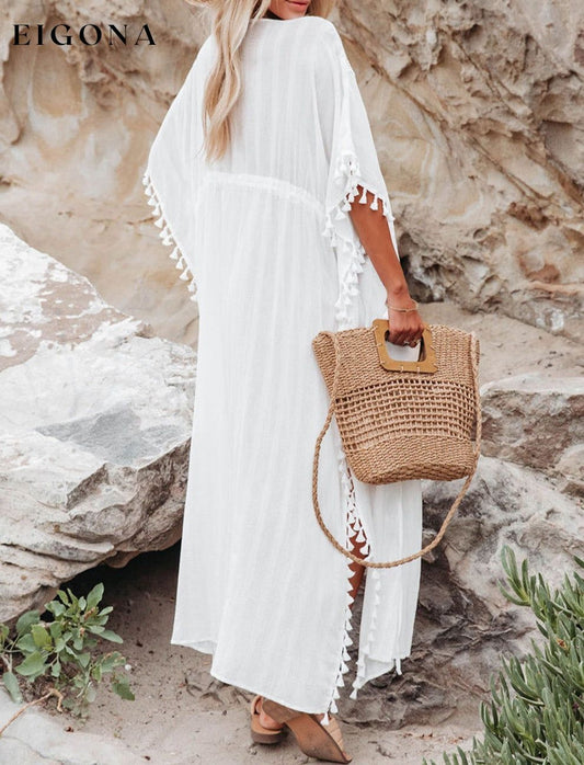 Hvit heklet dusk lår Høy Split Beach Cover Up
