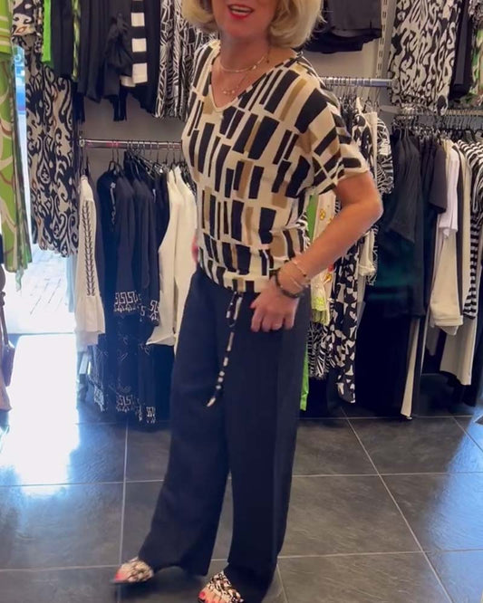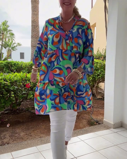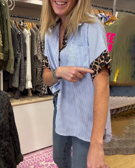 Uformell, løs kjole med leopardtrykk i kontrastfarge