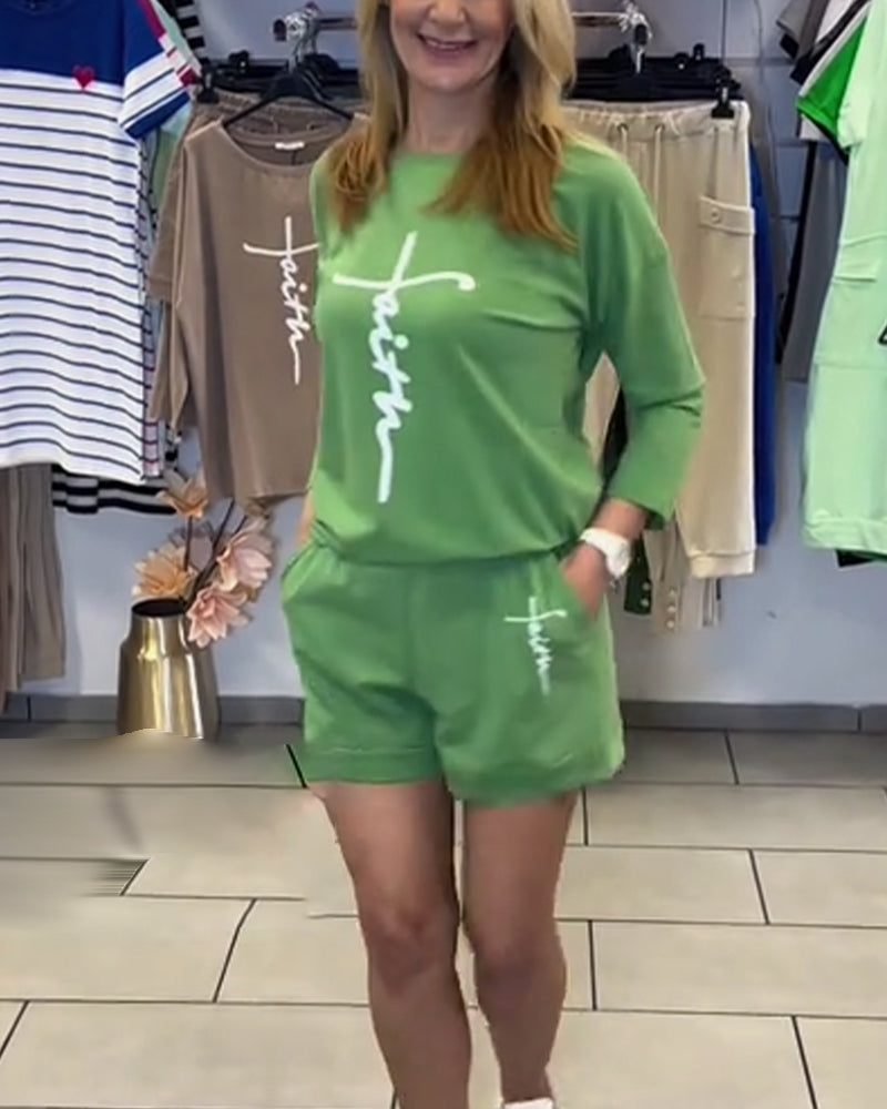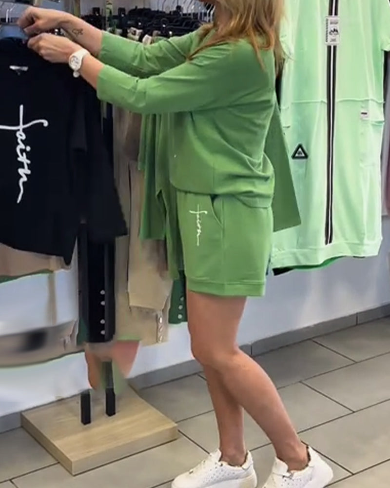 Long Sleeve Printed Shorts Set