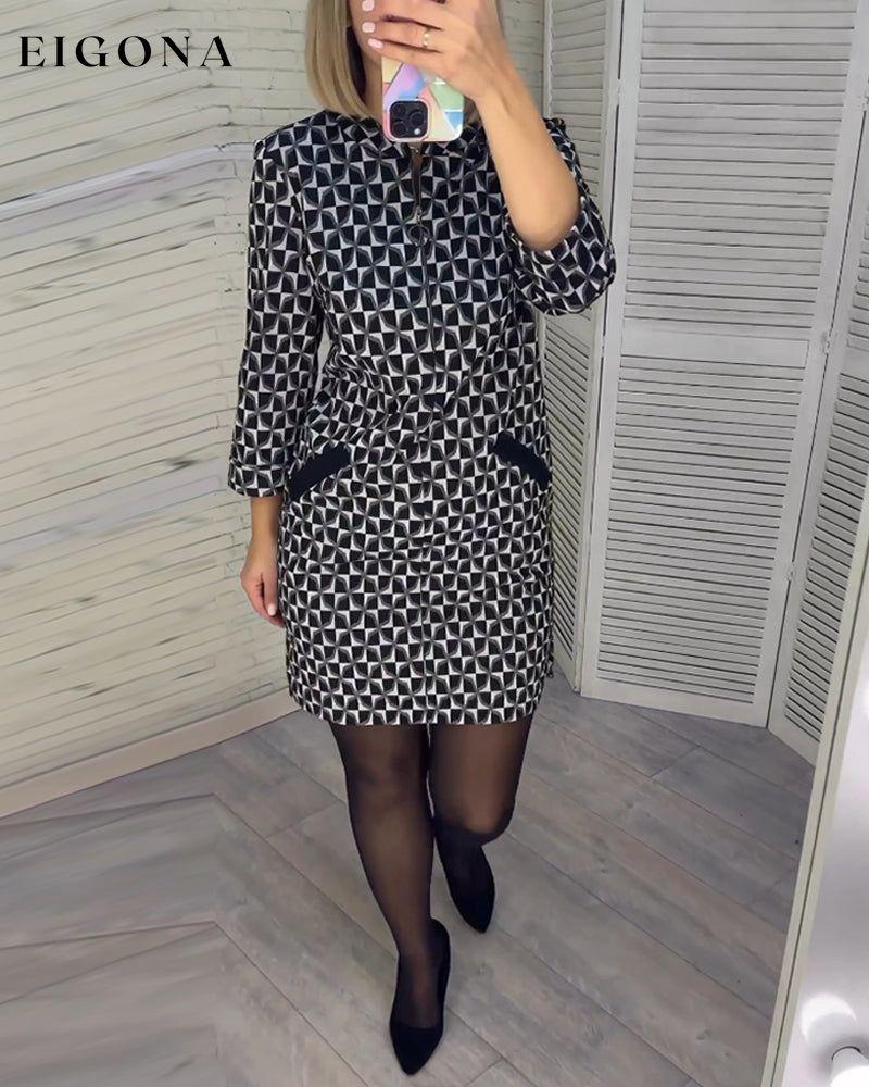 Argyle print long-sleeved dress