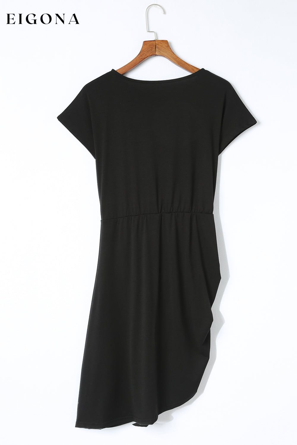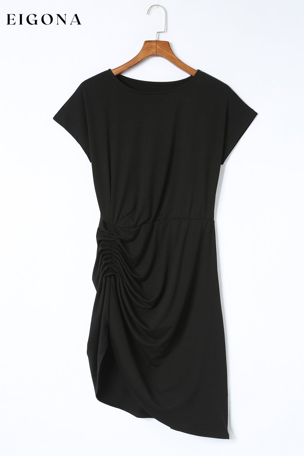 Black Side Shirring Short Sleeve Mini Dress