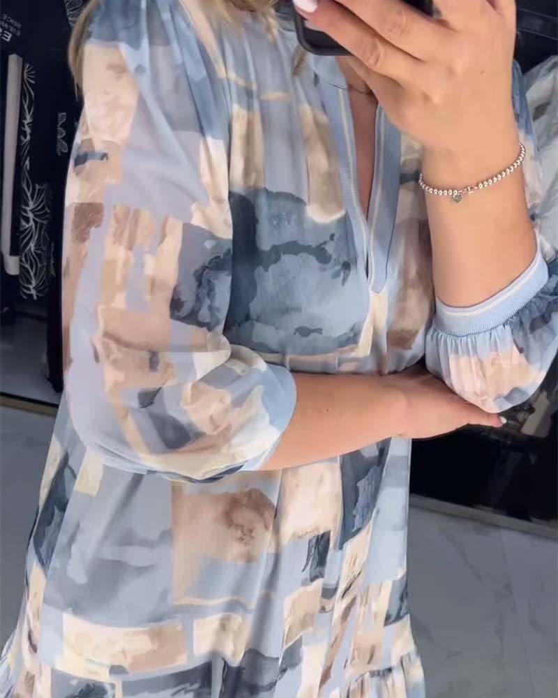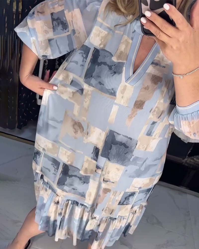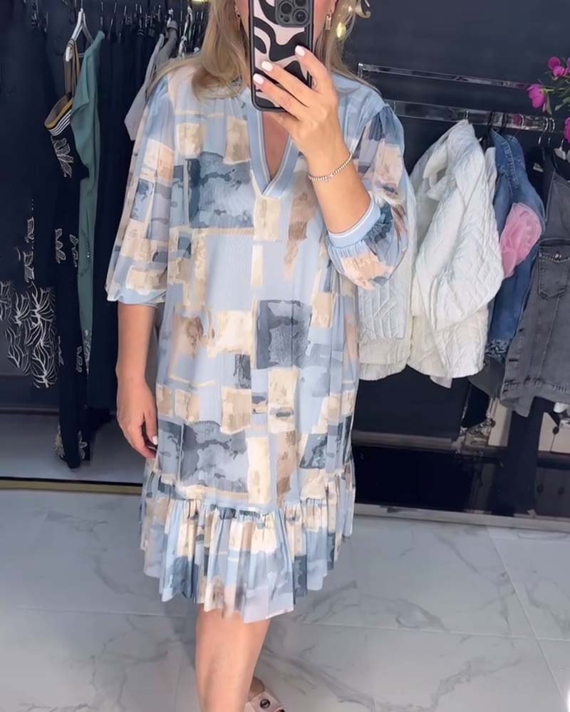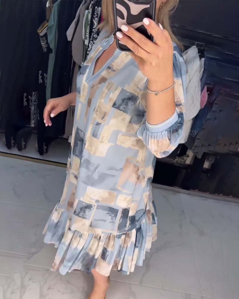 Casual printed lantern sleeve ruffle dress