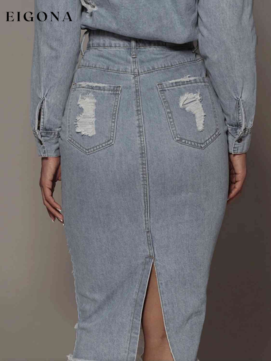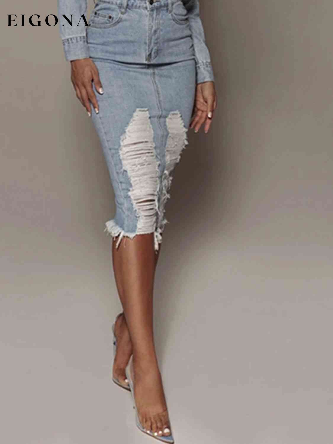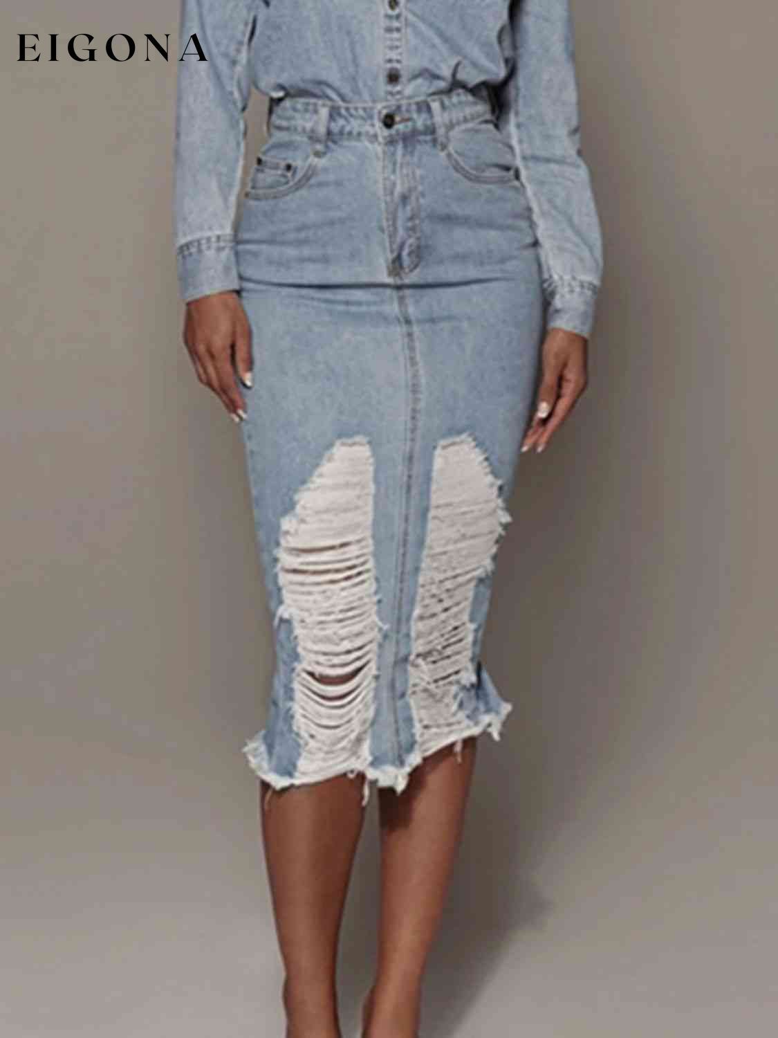 Distressed Slit Denim Skirt