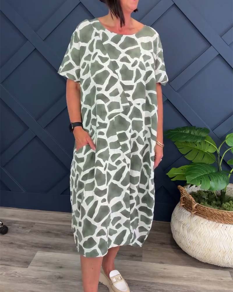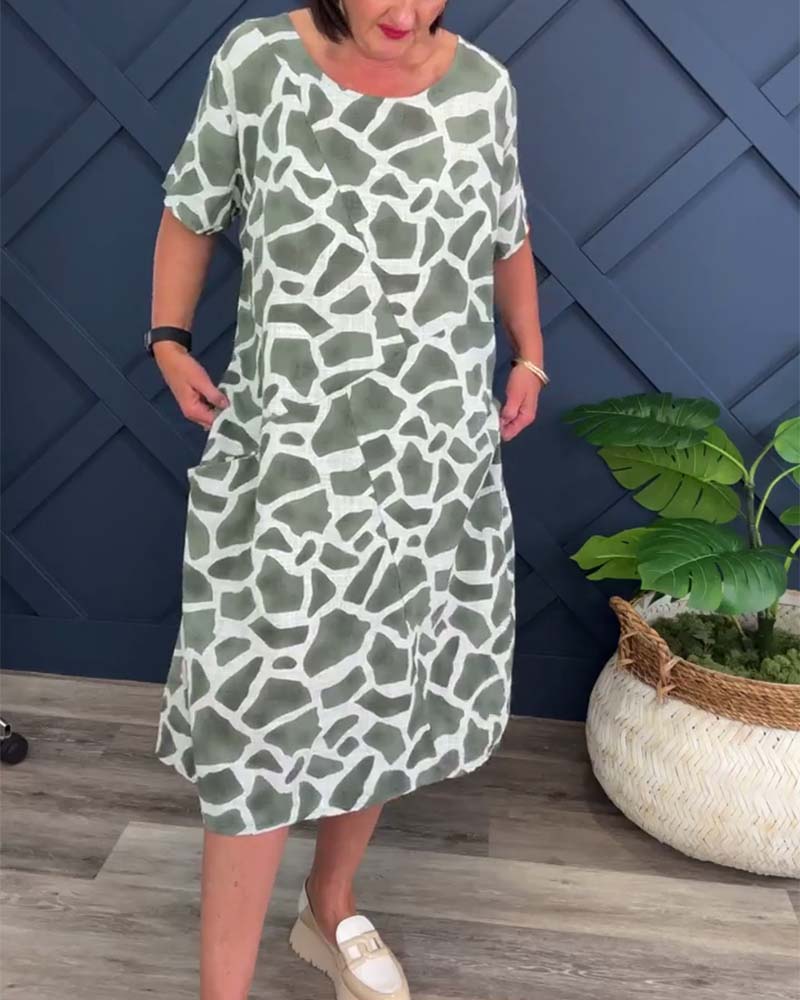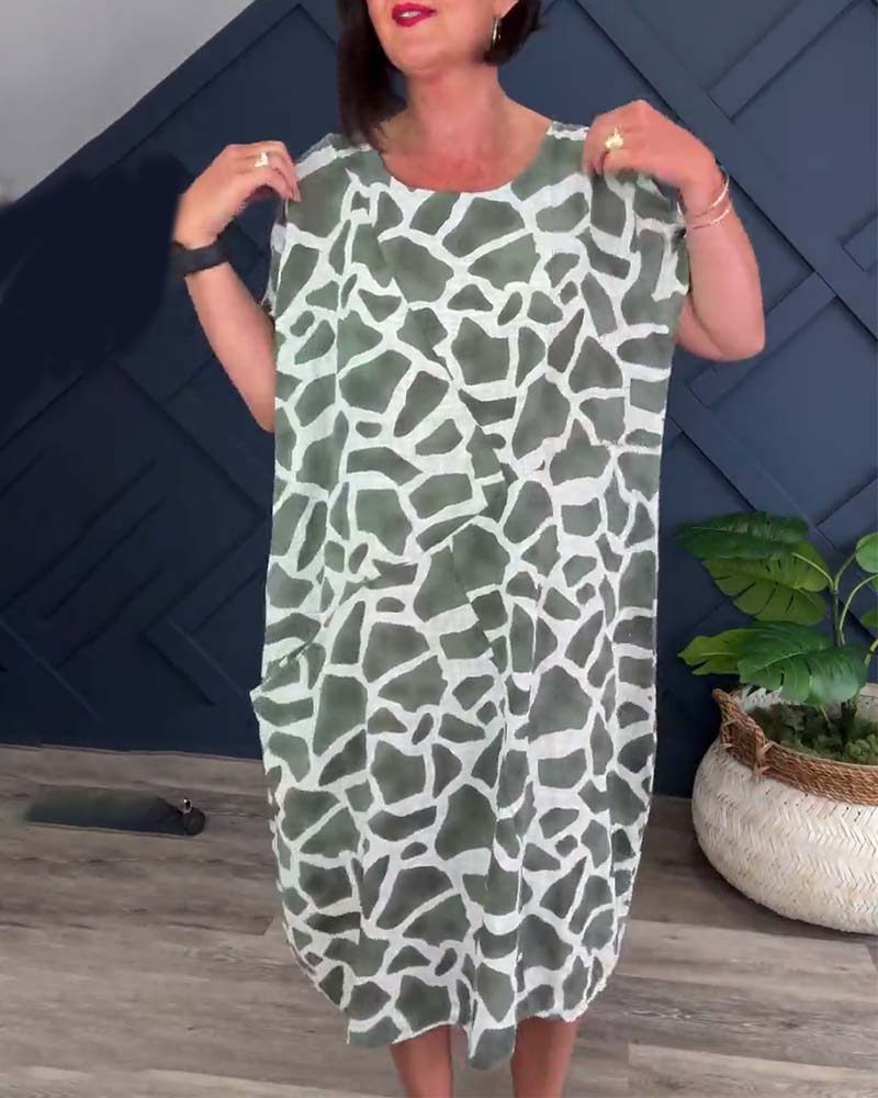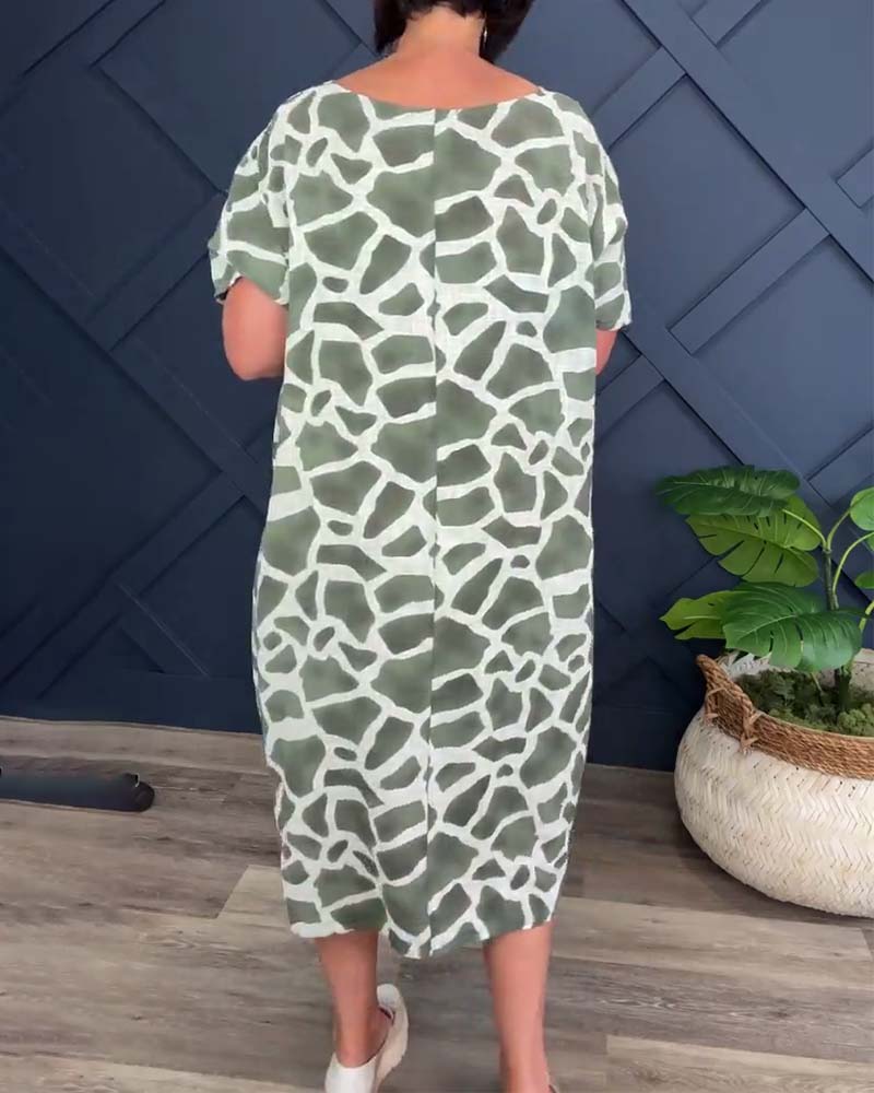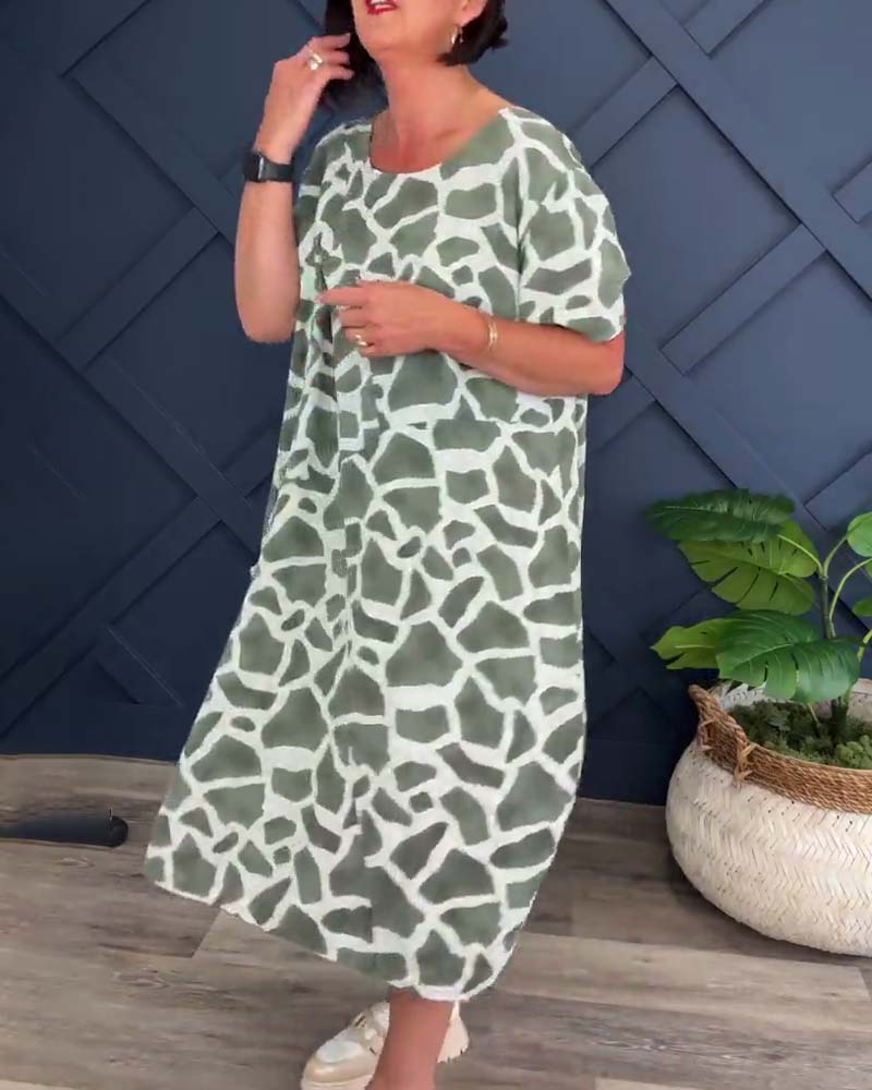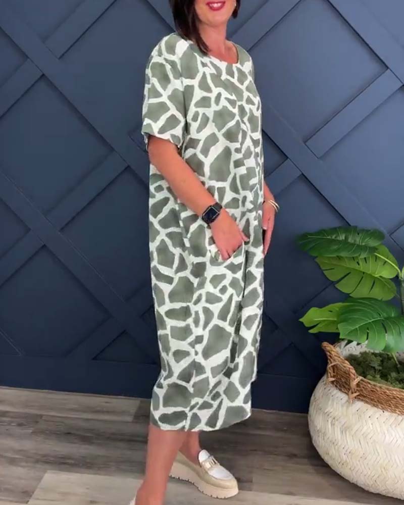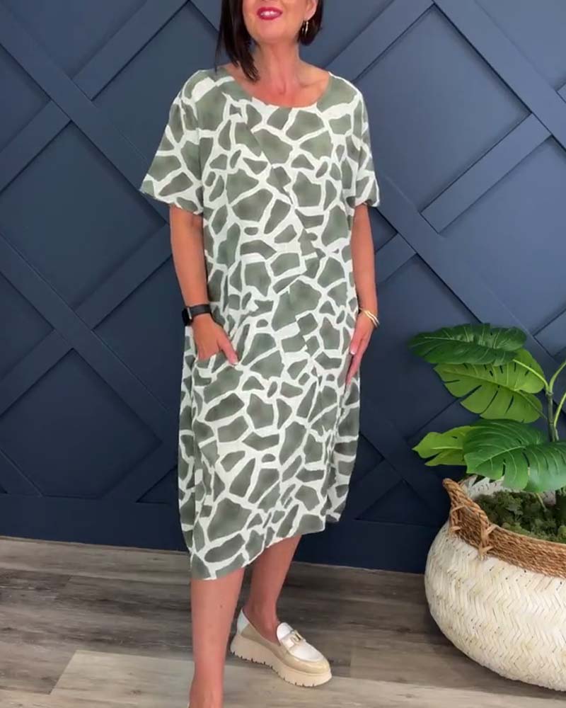 Giraffe print crew neck casual dress