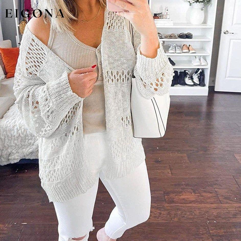 This loose fit knit cardigan has open front, batwing long sleeve, outwear, crochet knitted, boho and cute, solid color, breathable mesh.