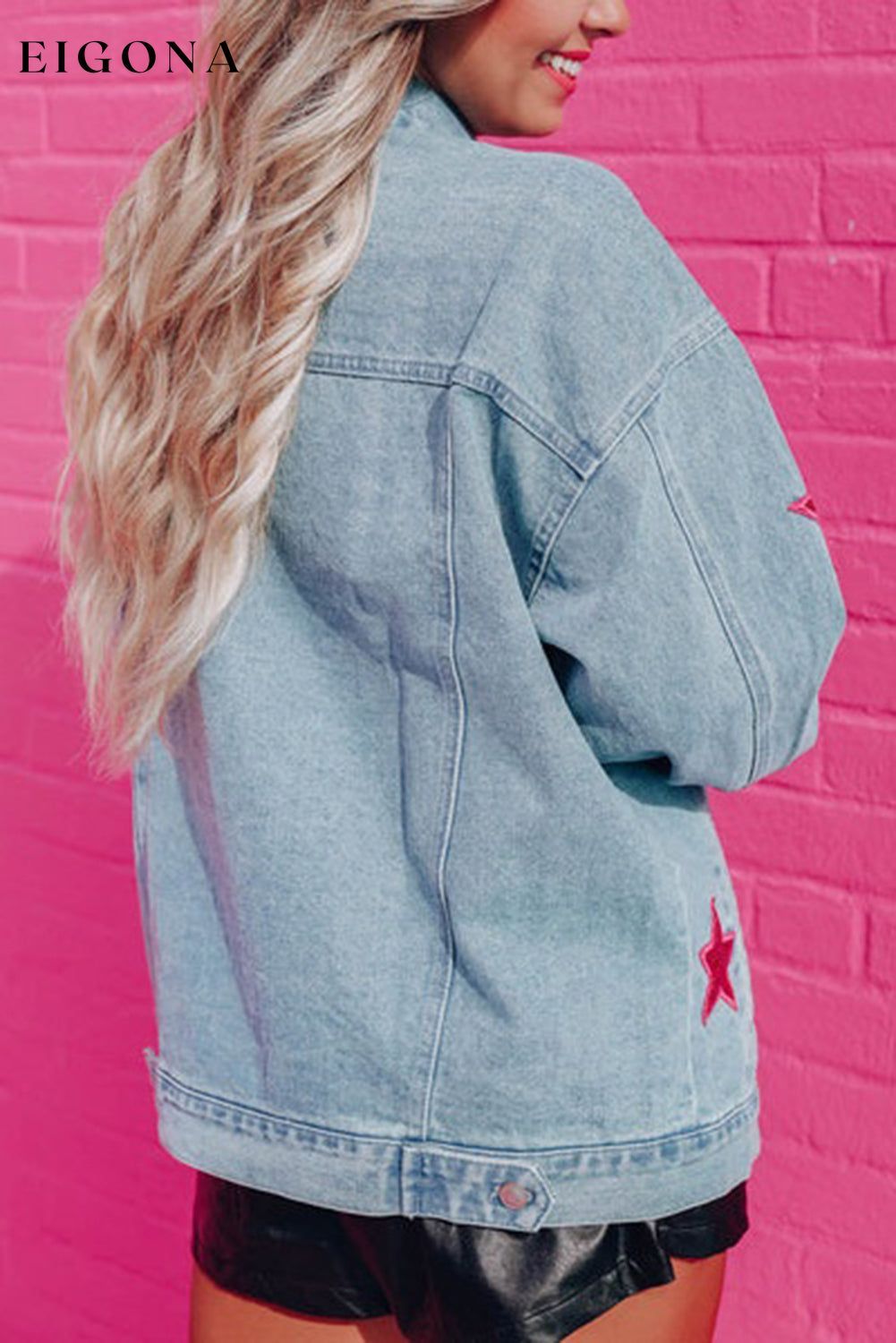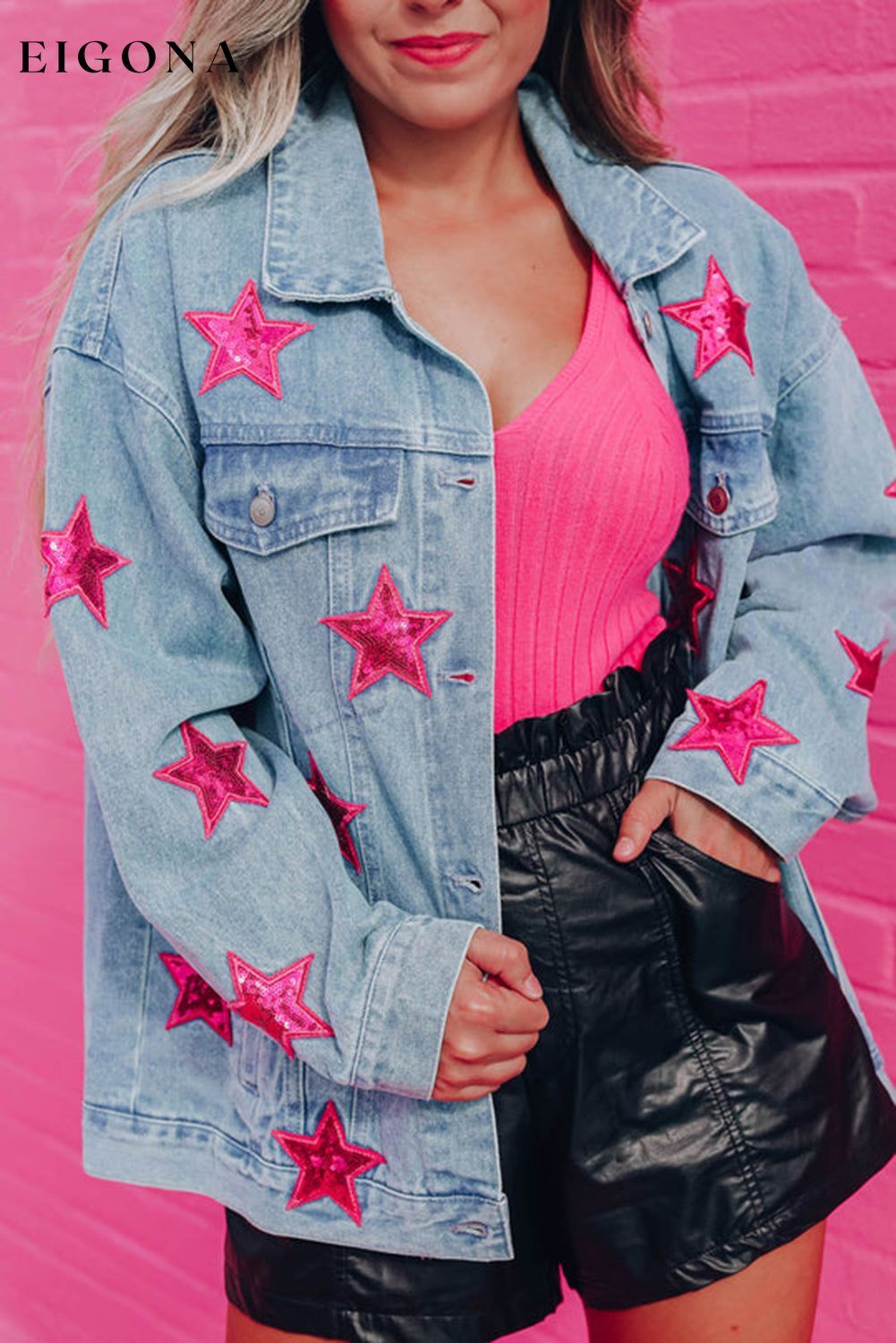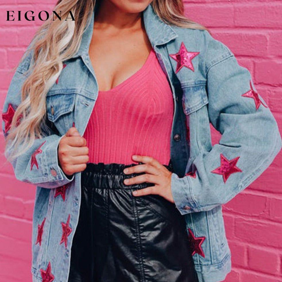 Light Blue Sequin Star Flap Pocket Denim Jacket