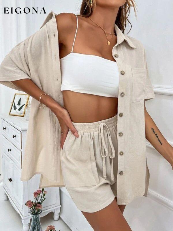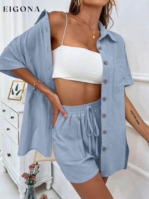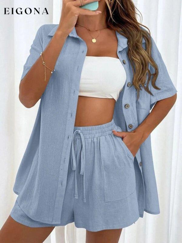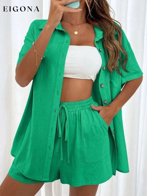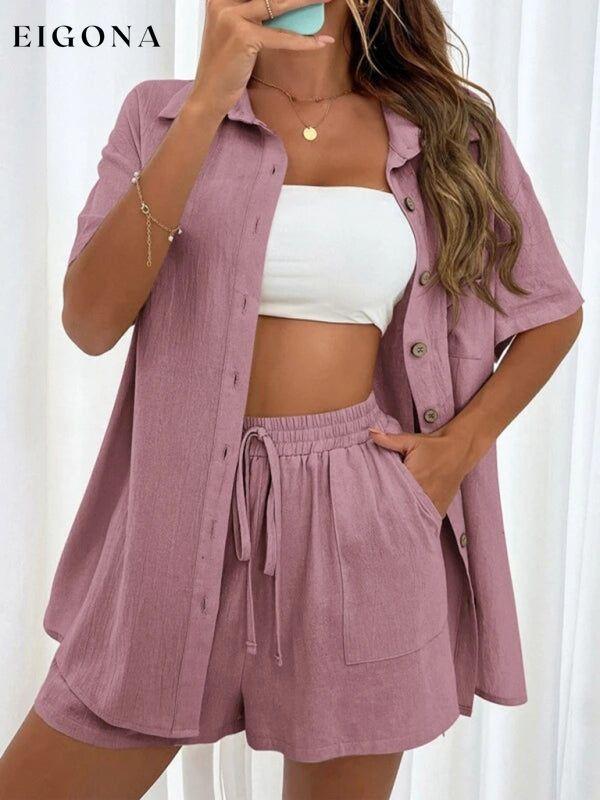 Loose-fit short-sleeve single-breasted shorts Two-piece solid-color shirt set
