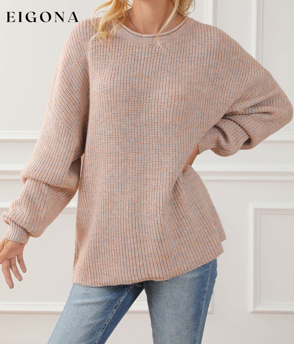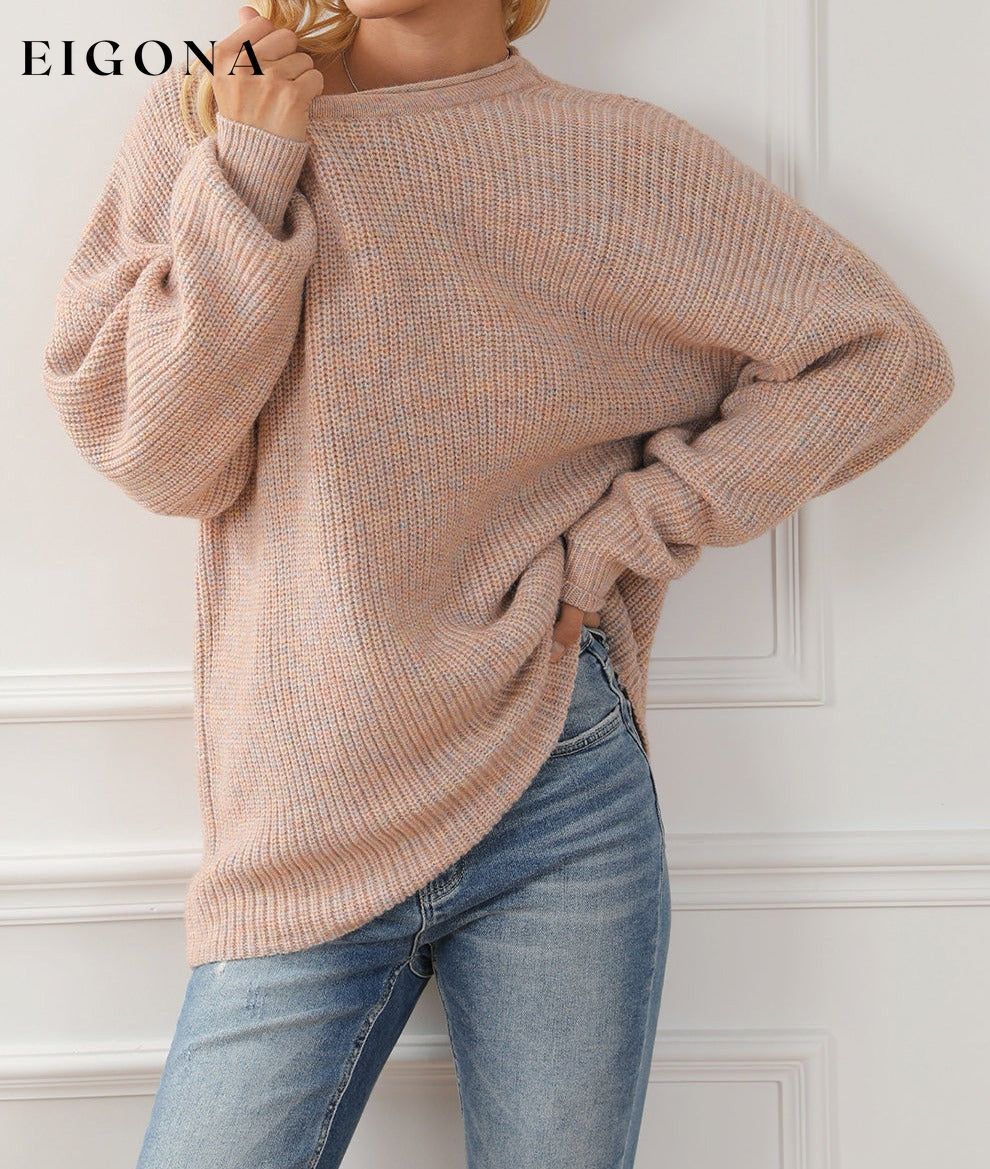 Multicolor Rolled Round Neck Drop Shoulder Sweater