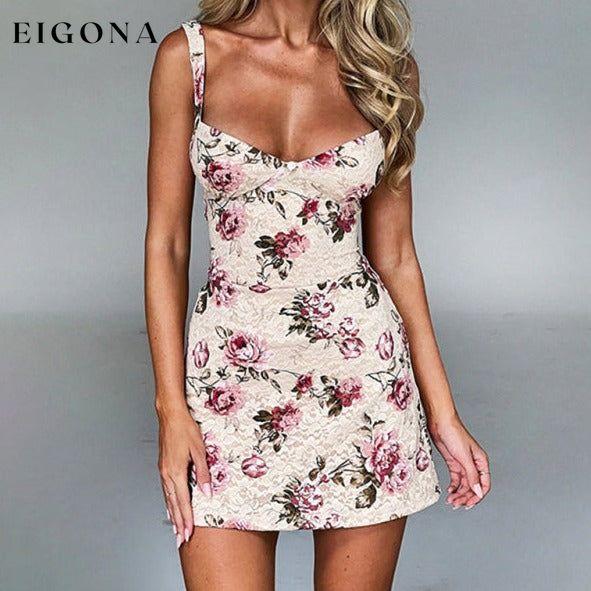 New lace printed suspenders showing breasts street retro fashion casual dress short skirt