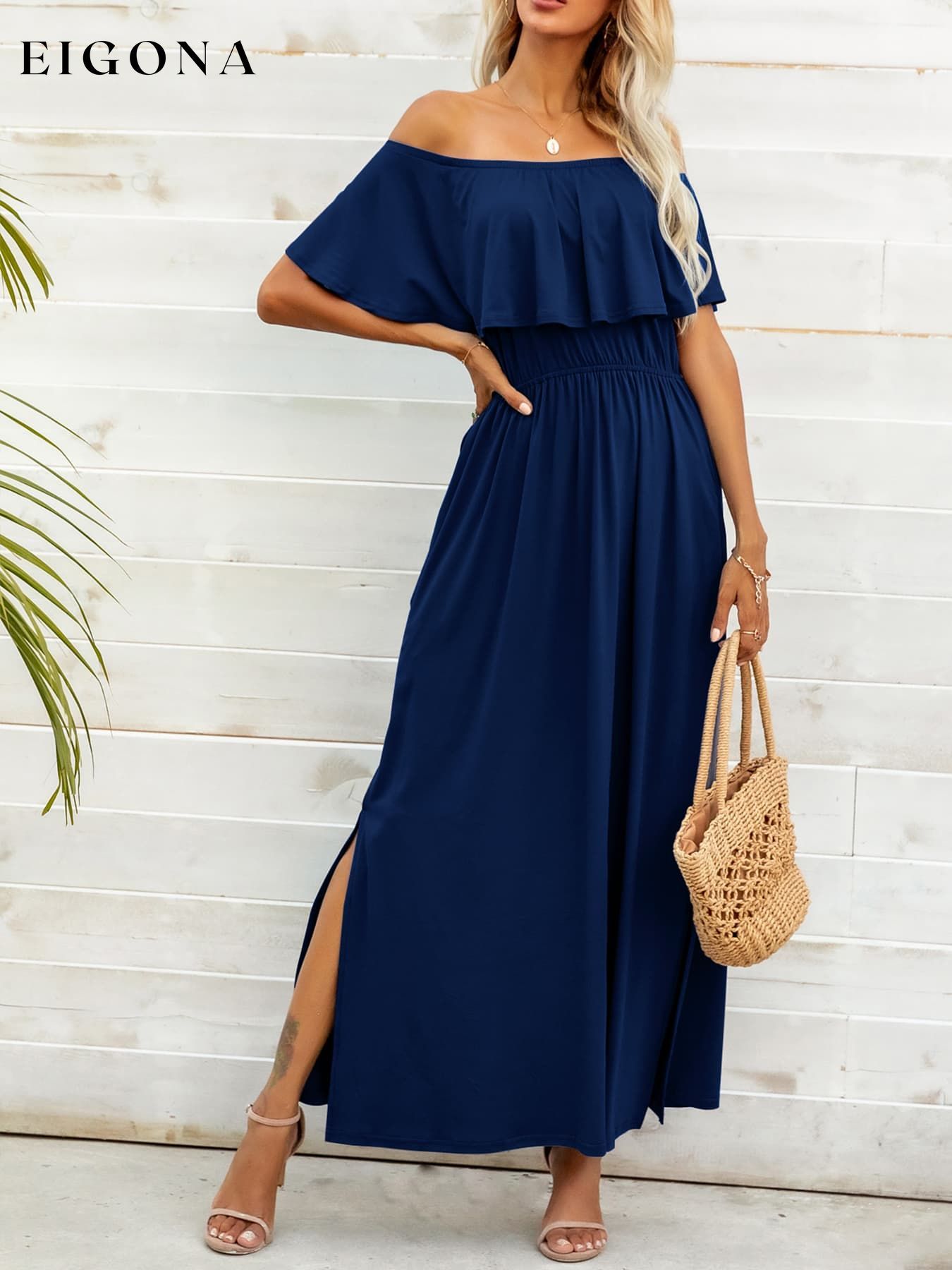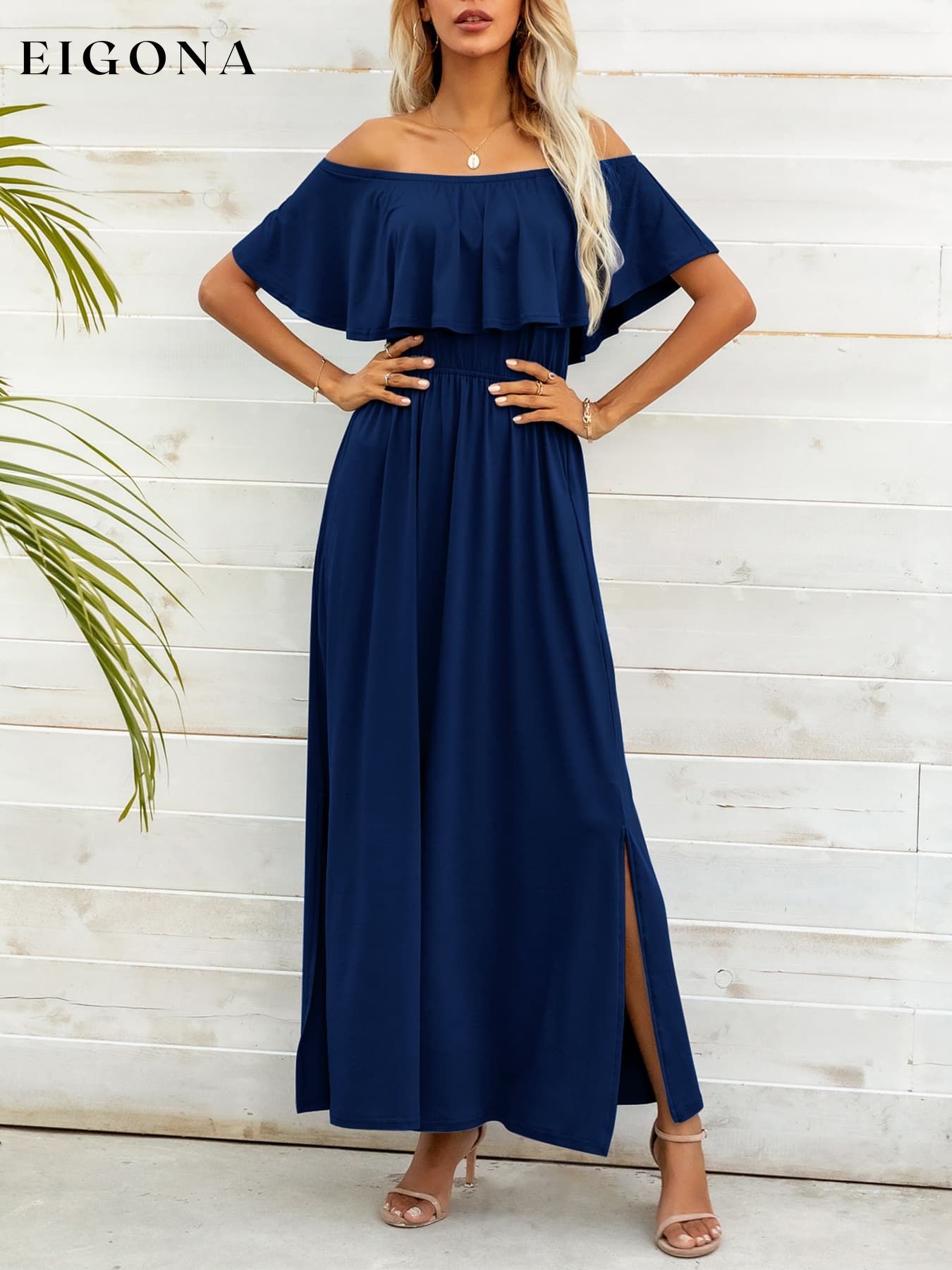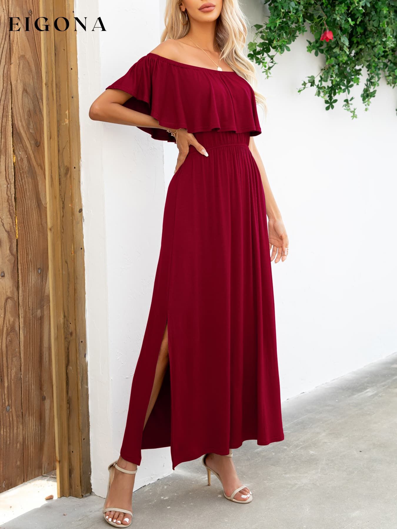 Off-Shoulder Slit Maxi Dress