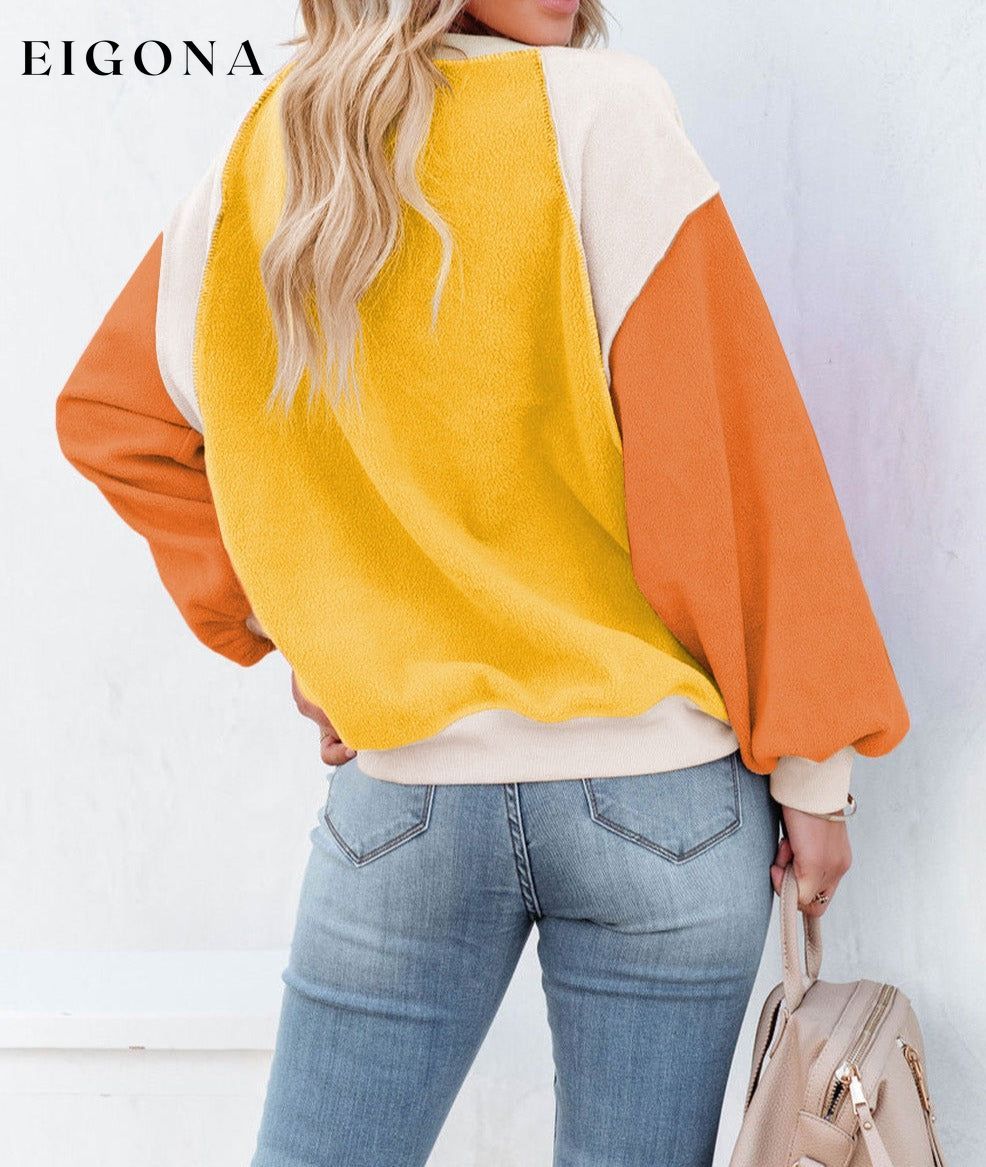 Orange Colorblock Long Sleeve Pullover Fleece Sweatshirt