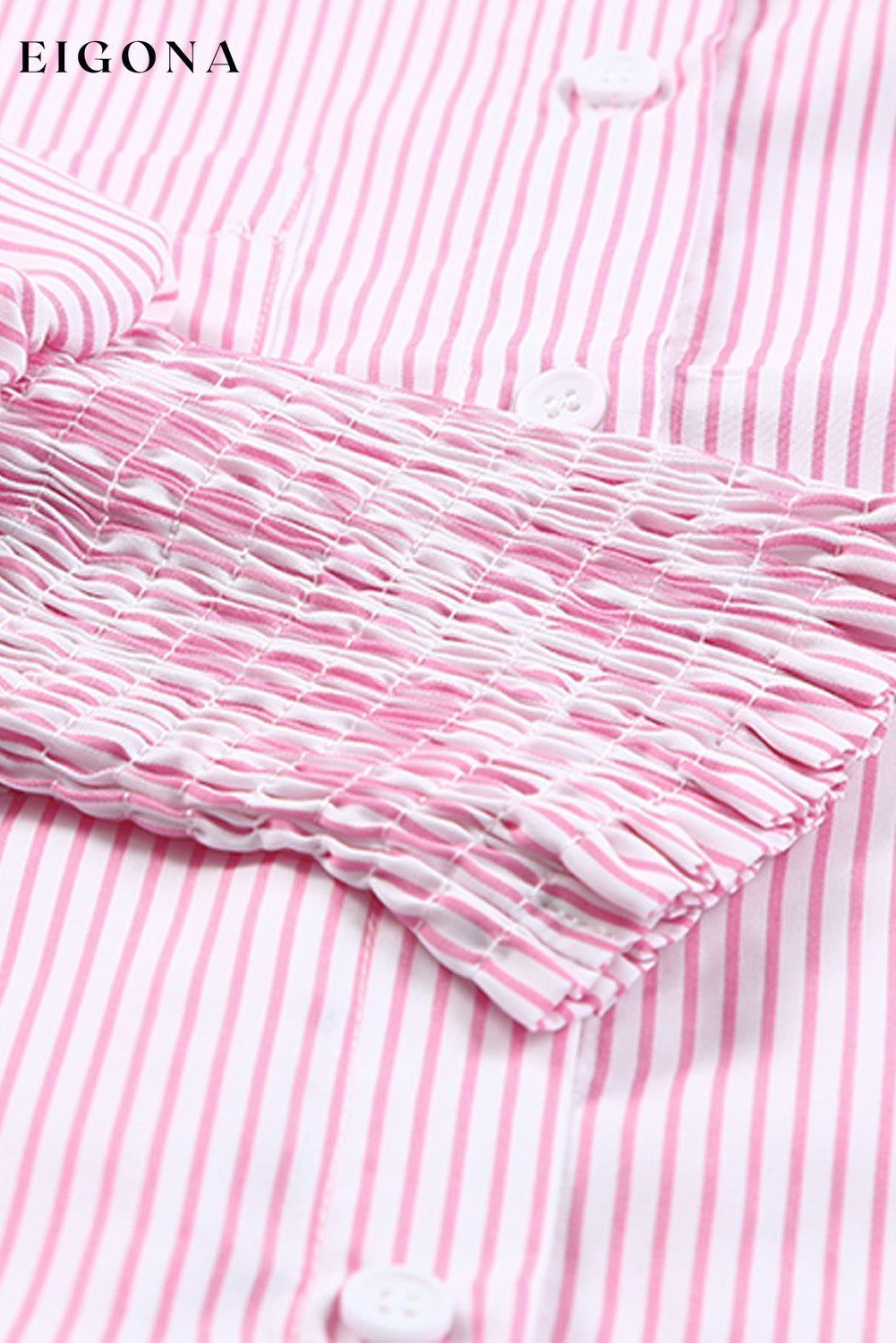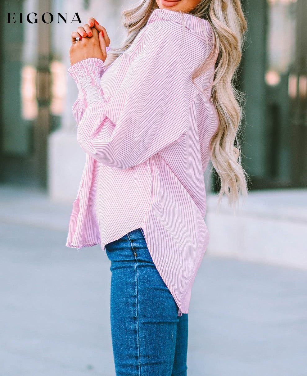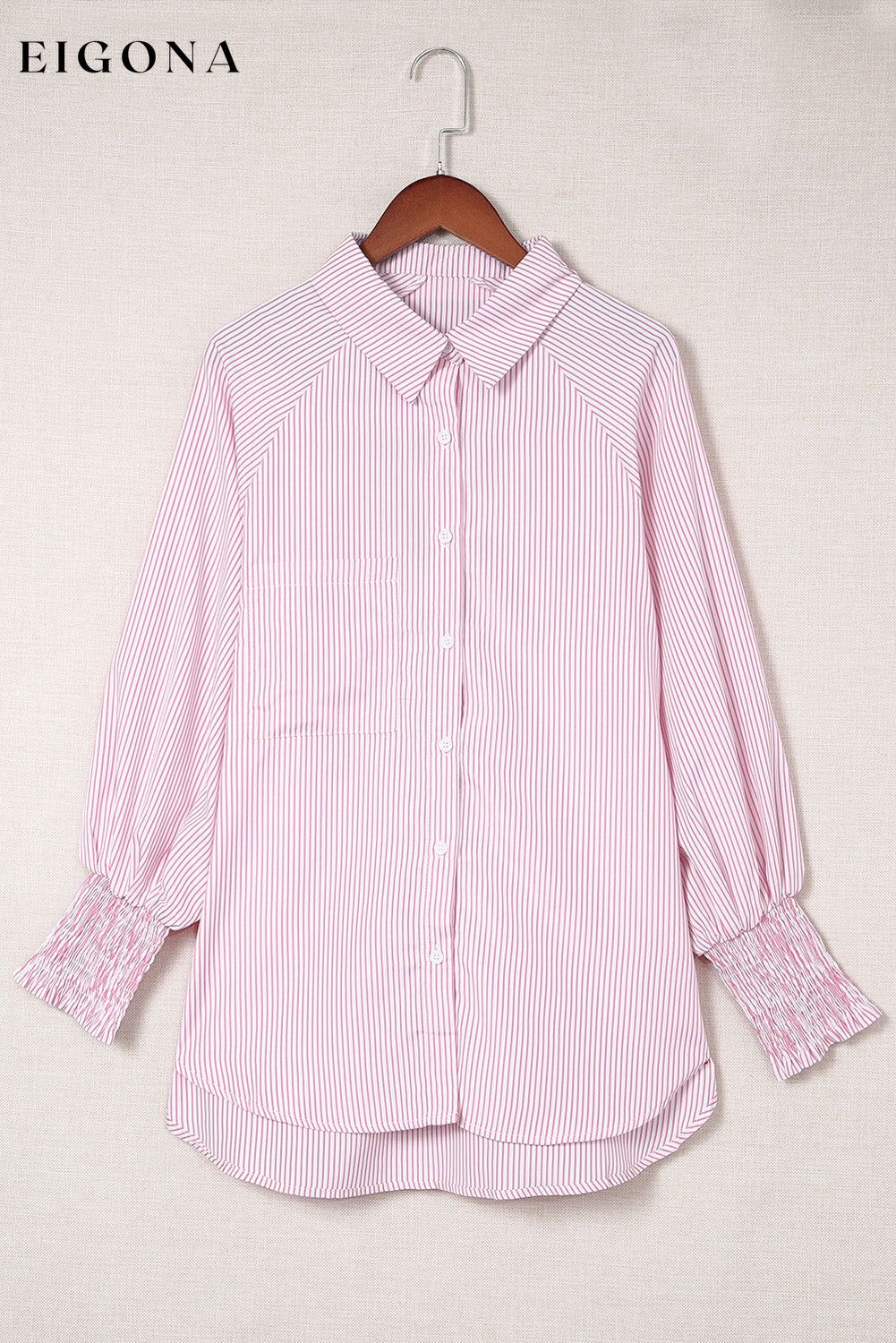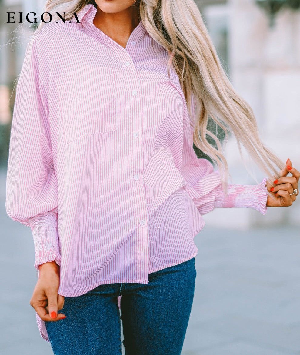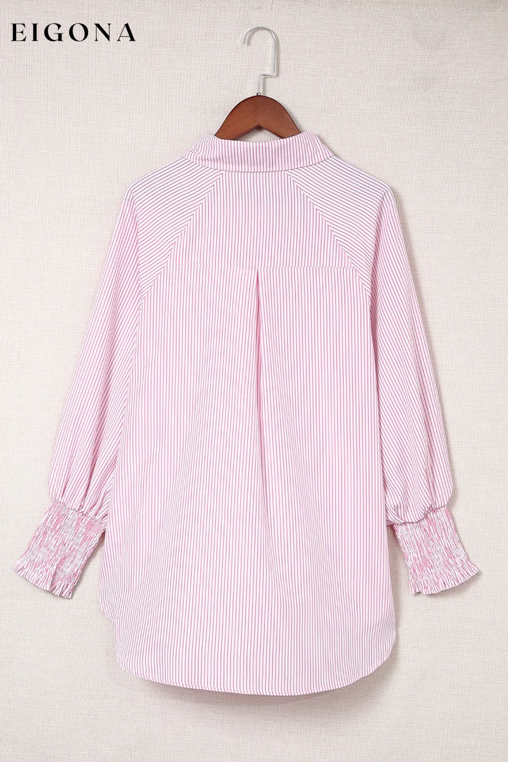 Pink Smocked Cuffed Striped Boyfriend Shirt with Pocket