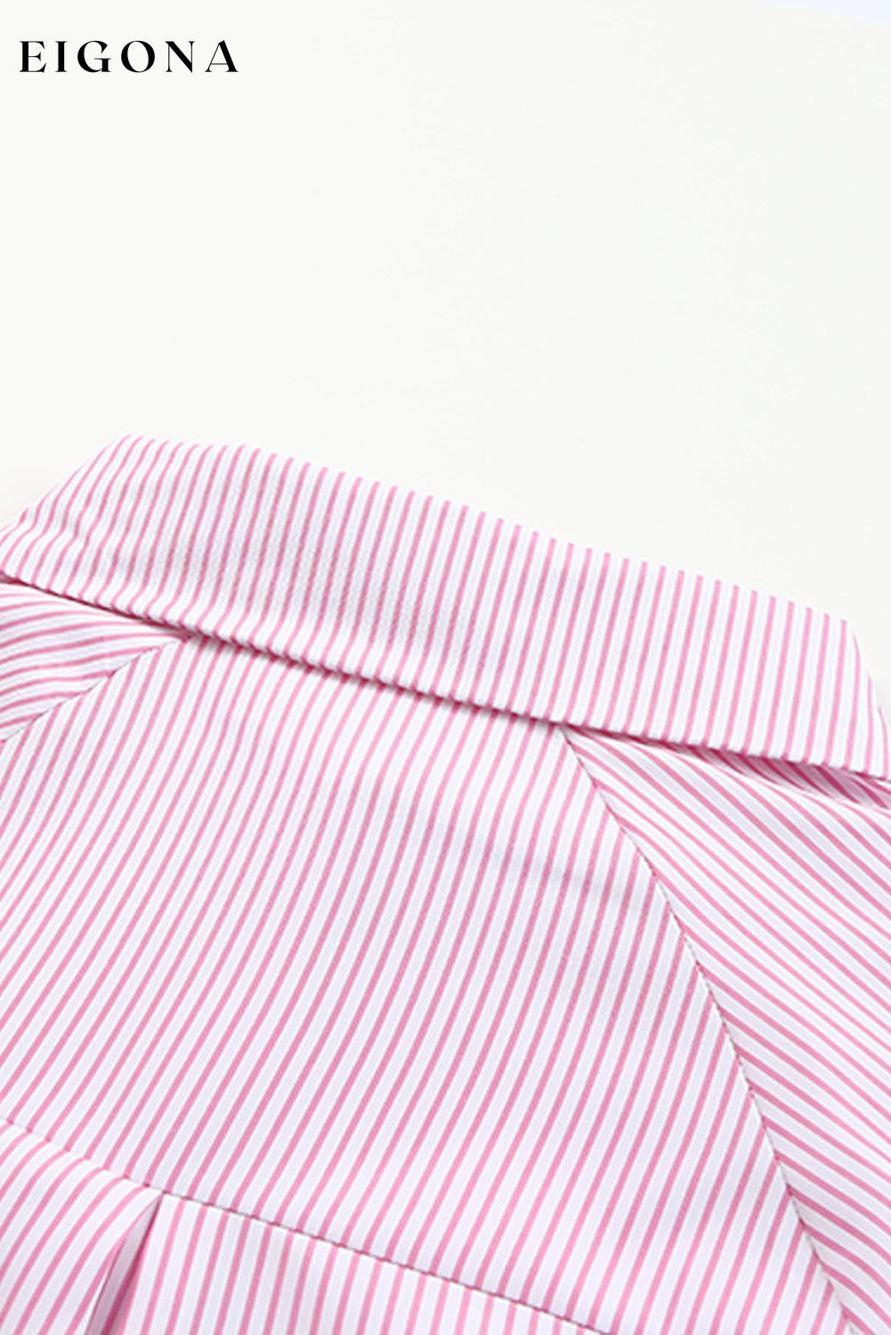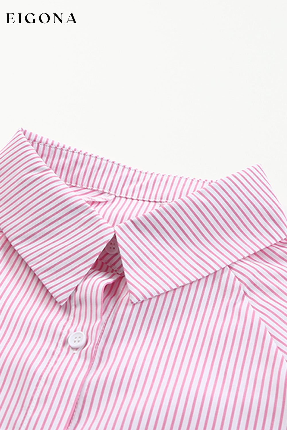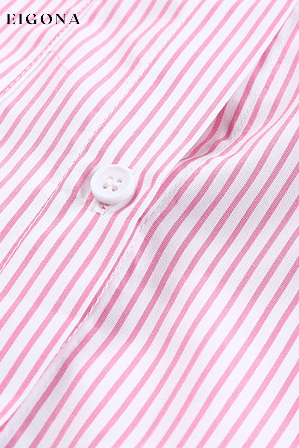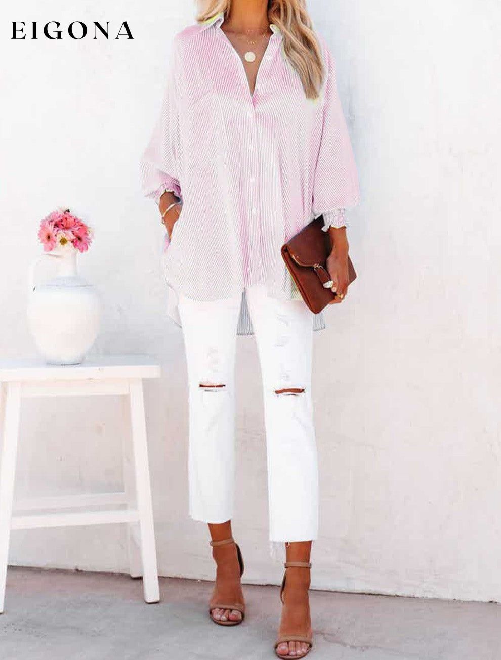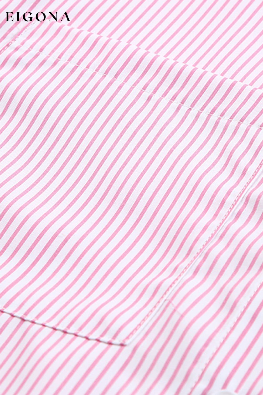 Pink Smocked Cuffed Striped Boyfriend Shirt with Pocket