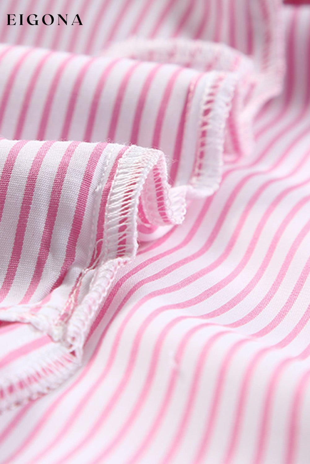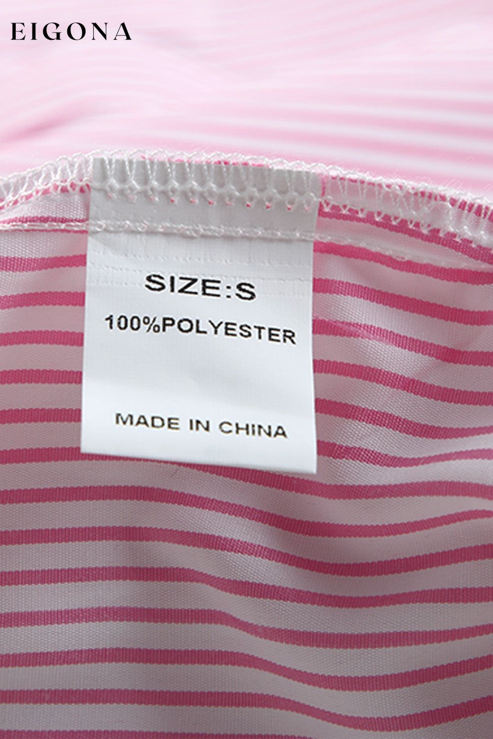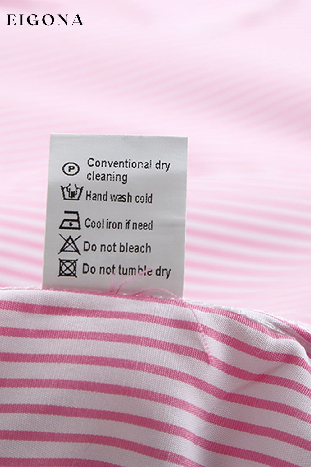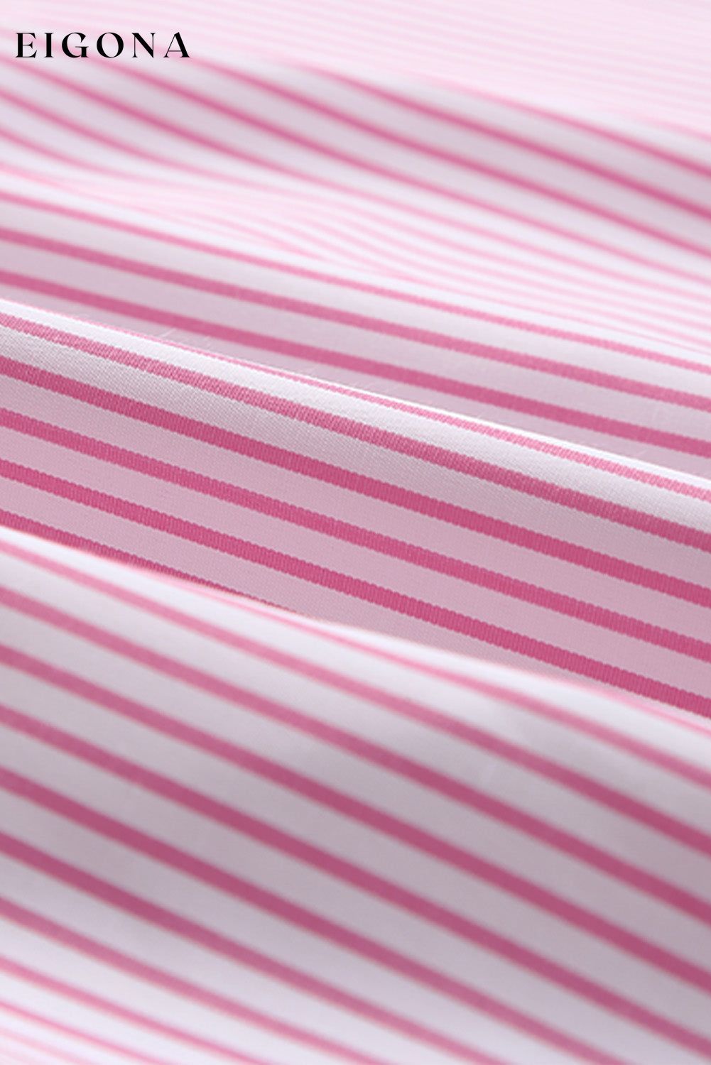 Pink Smocked Cuffed Striped Boyfriend Shirt with Pocket