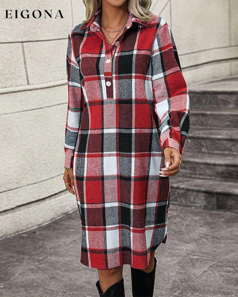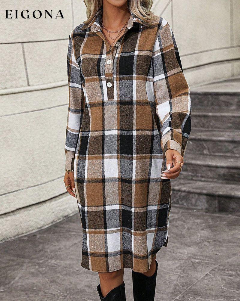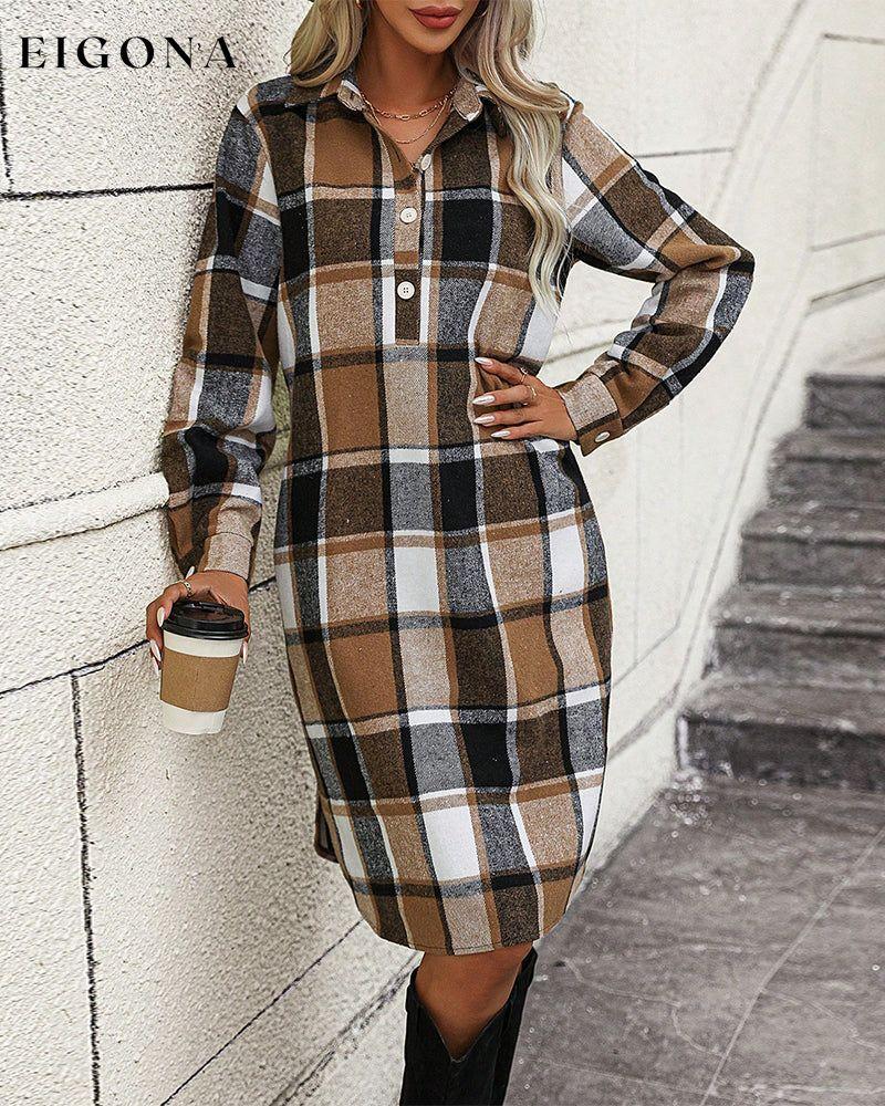 Plaid Lapel Shift Dress