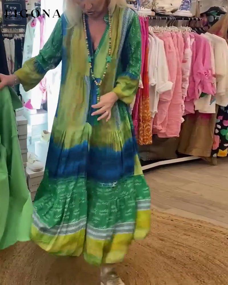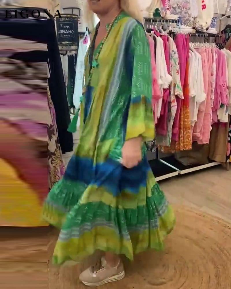 Printed casual V-neck flare sleeve long dress