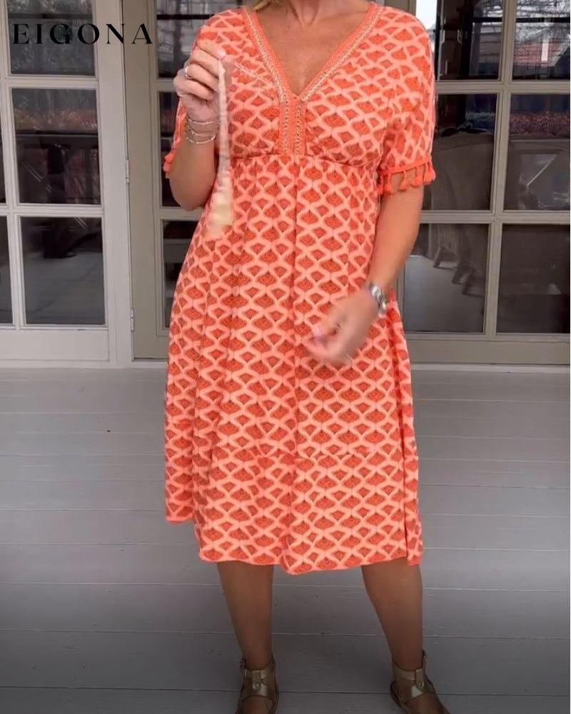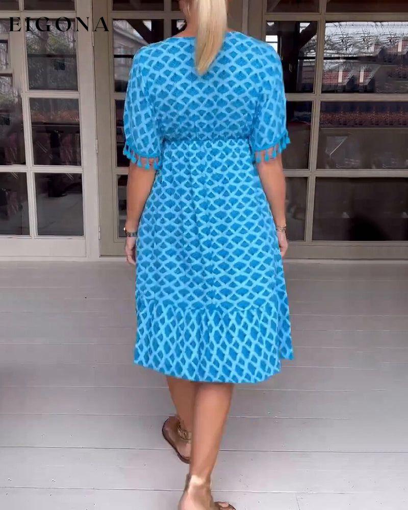 Printed v-neck fringed dress