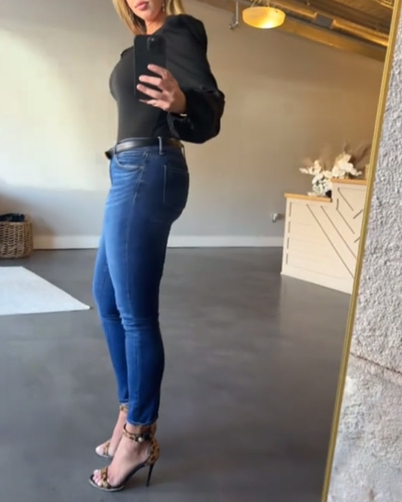 Bring the measuring tape around your hips and measure around the fullest part of your bottom