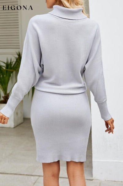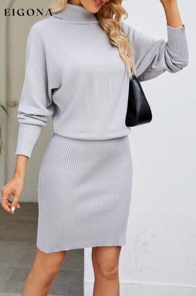Ribbed Mock Neck Long Sleeve Sweater Dress