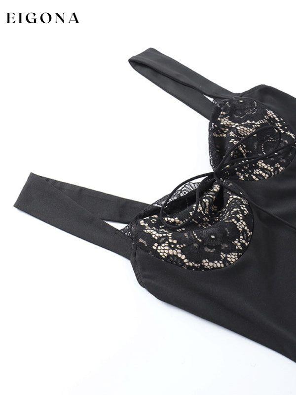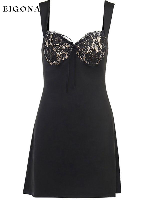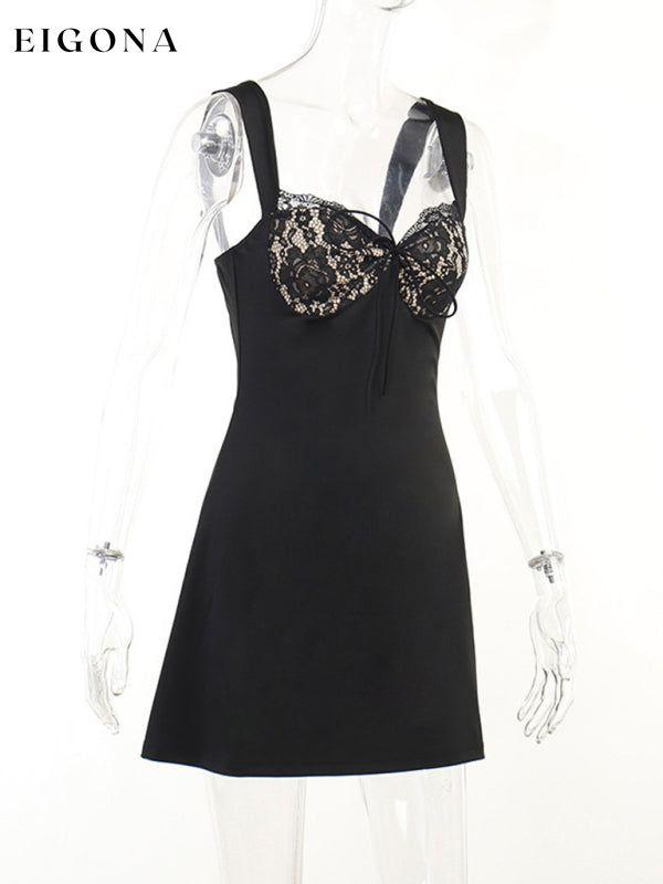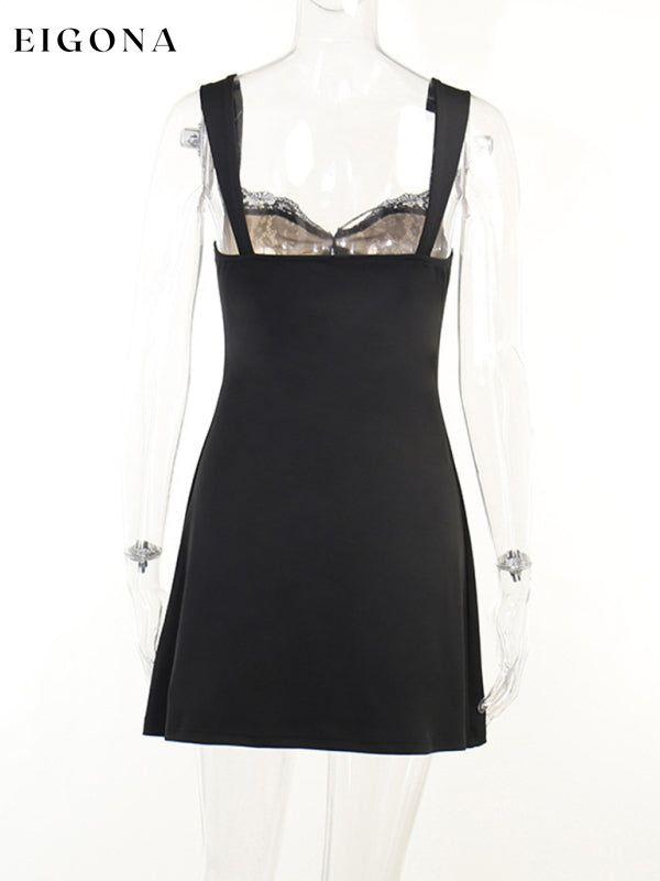 Sexy Lace Stitching Wavy Neck Backless Strap Package Hip A-Line Dress