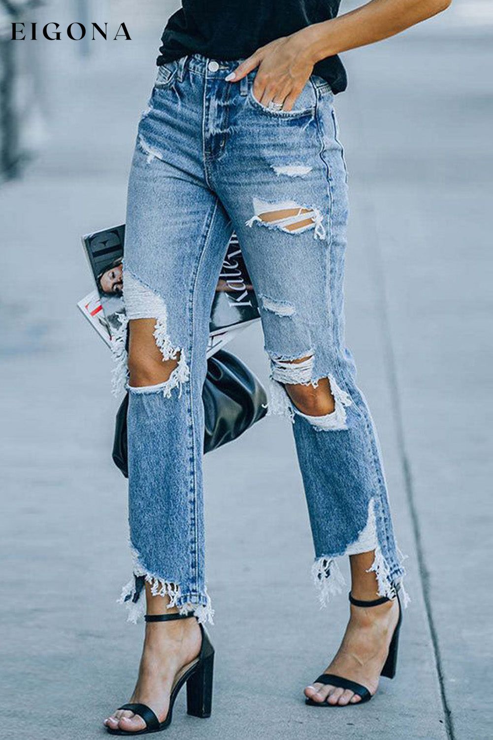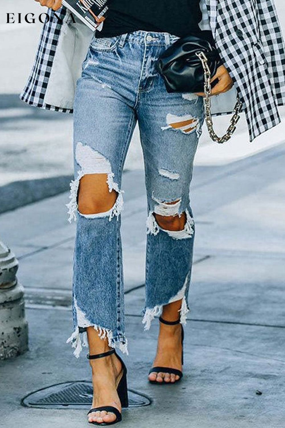 Sky Blue Ripped Knee Hole High Waist Jeans