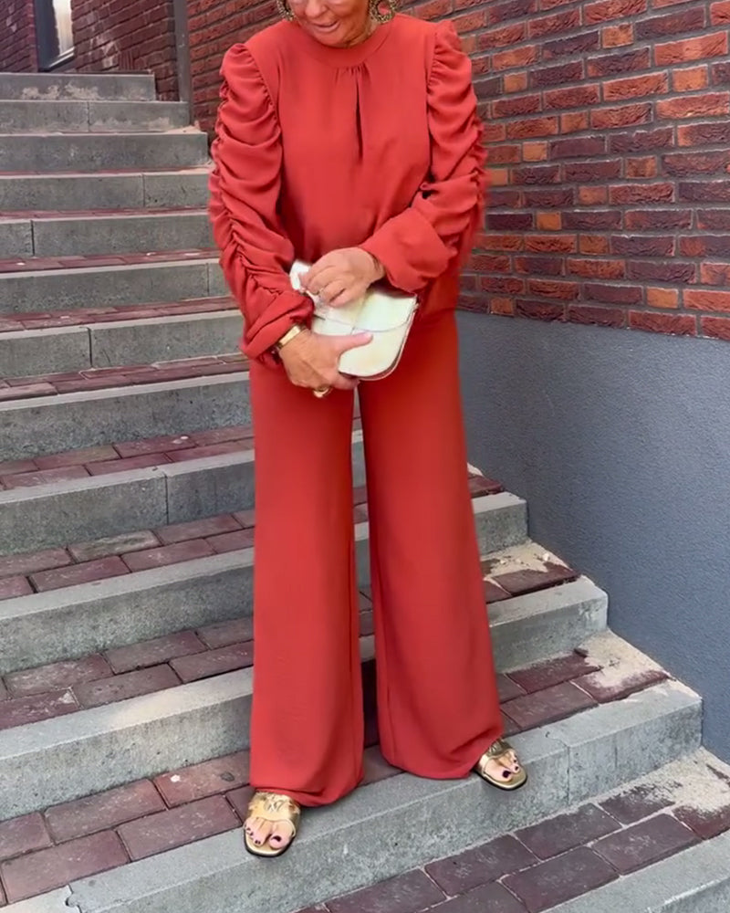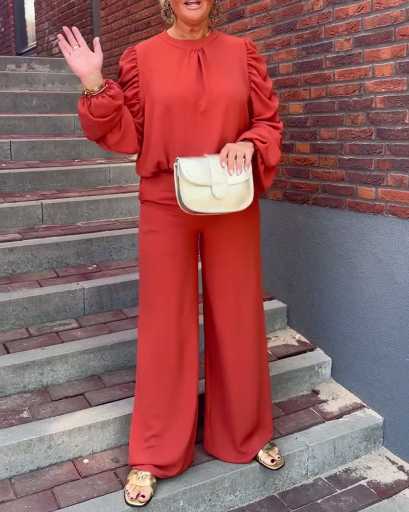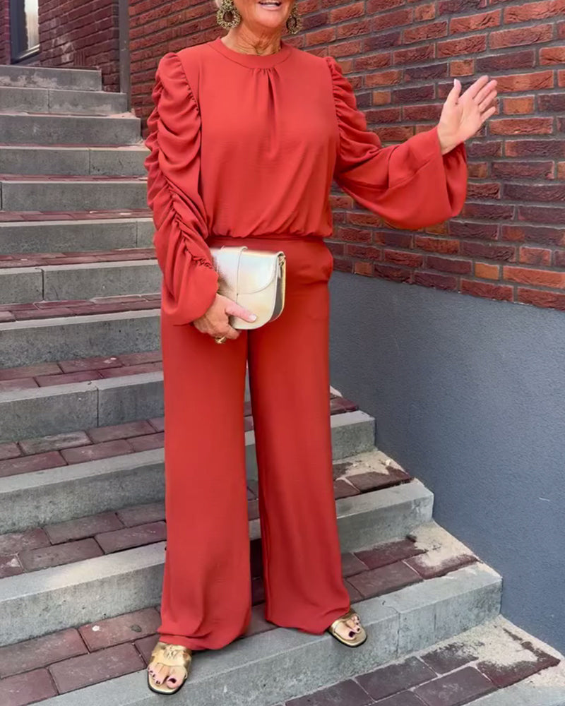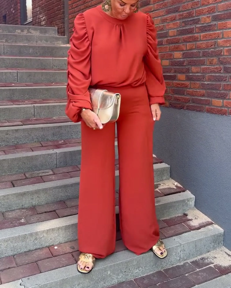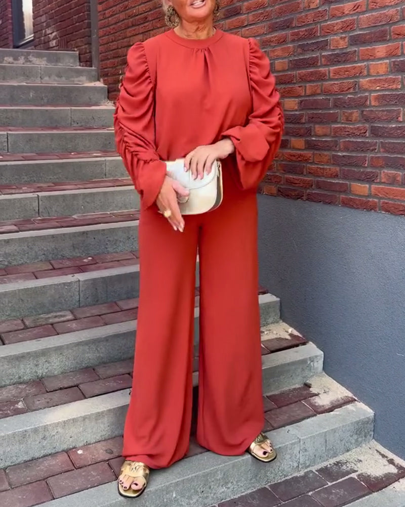 Solid color long sleeve loose blouse