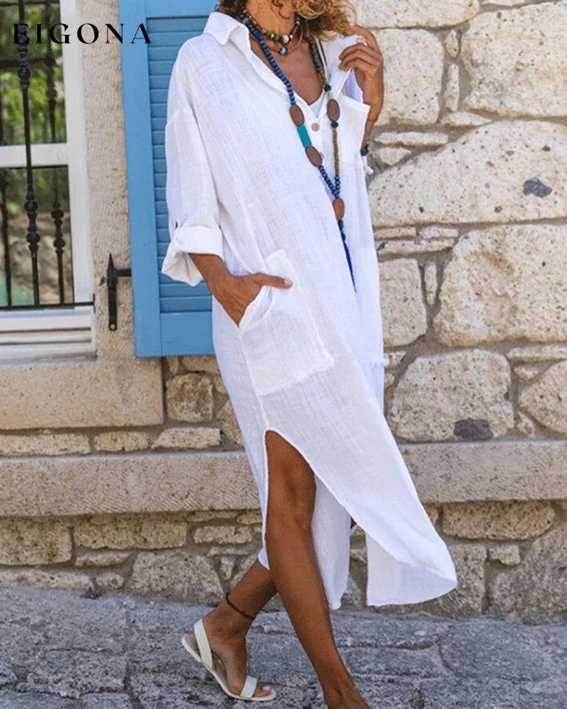 Solid color long sleeve shirt dress