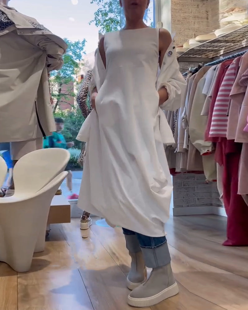 Solid Color Sleeveless Loose Dress