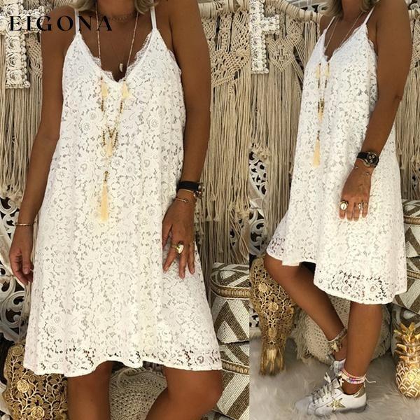 Summer Women's Loose V-neck Sling Dress Sleeveless Dress Lace Dress.