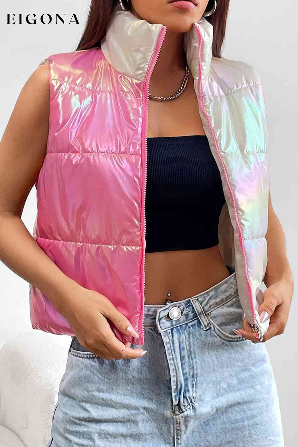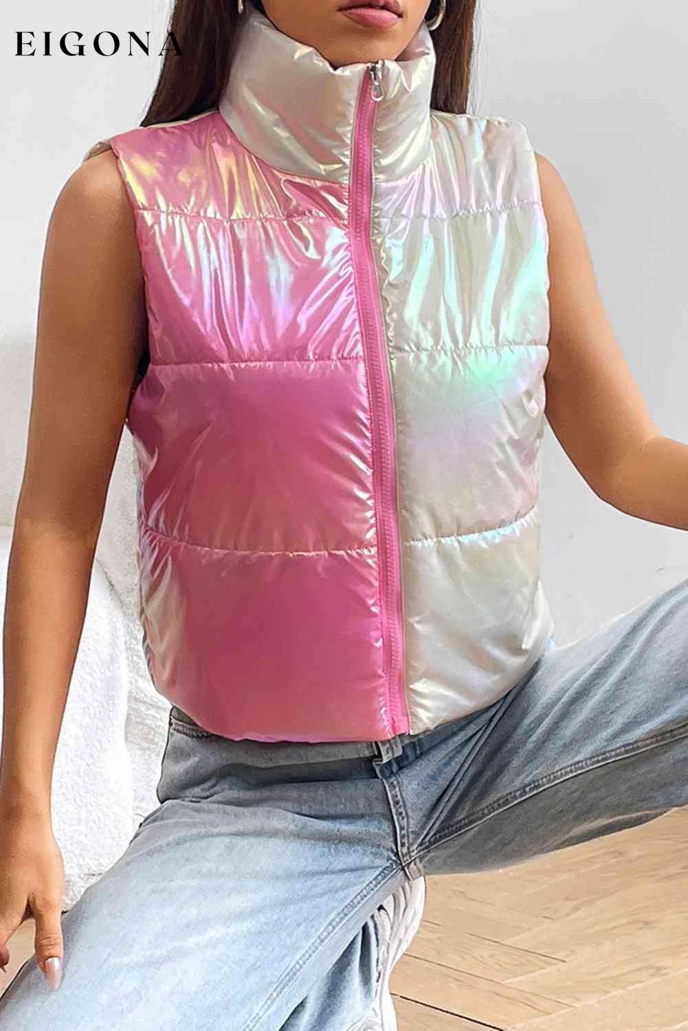 Turtleneck Color Block Pink Chrome Sleeveless Vest
