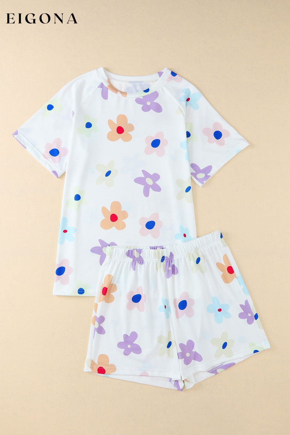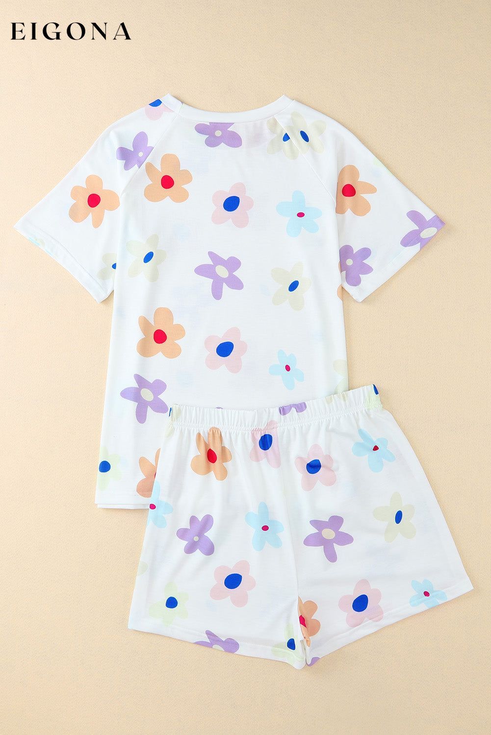 - It includes a loose-fit tee and elastic waist shorts