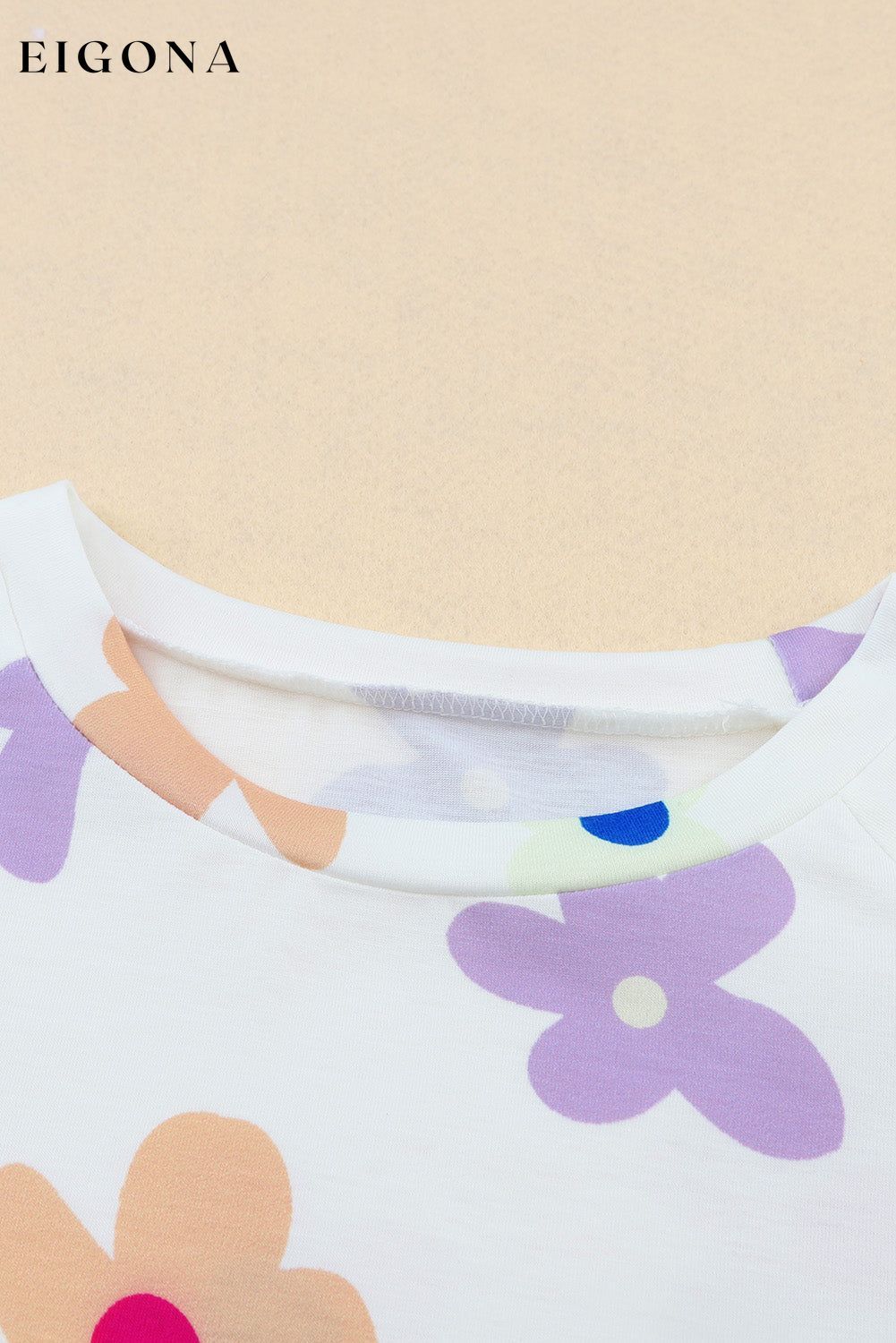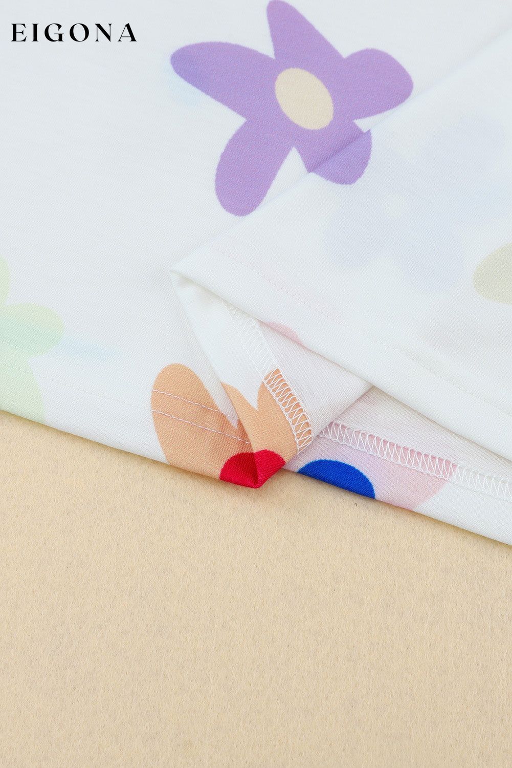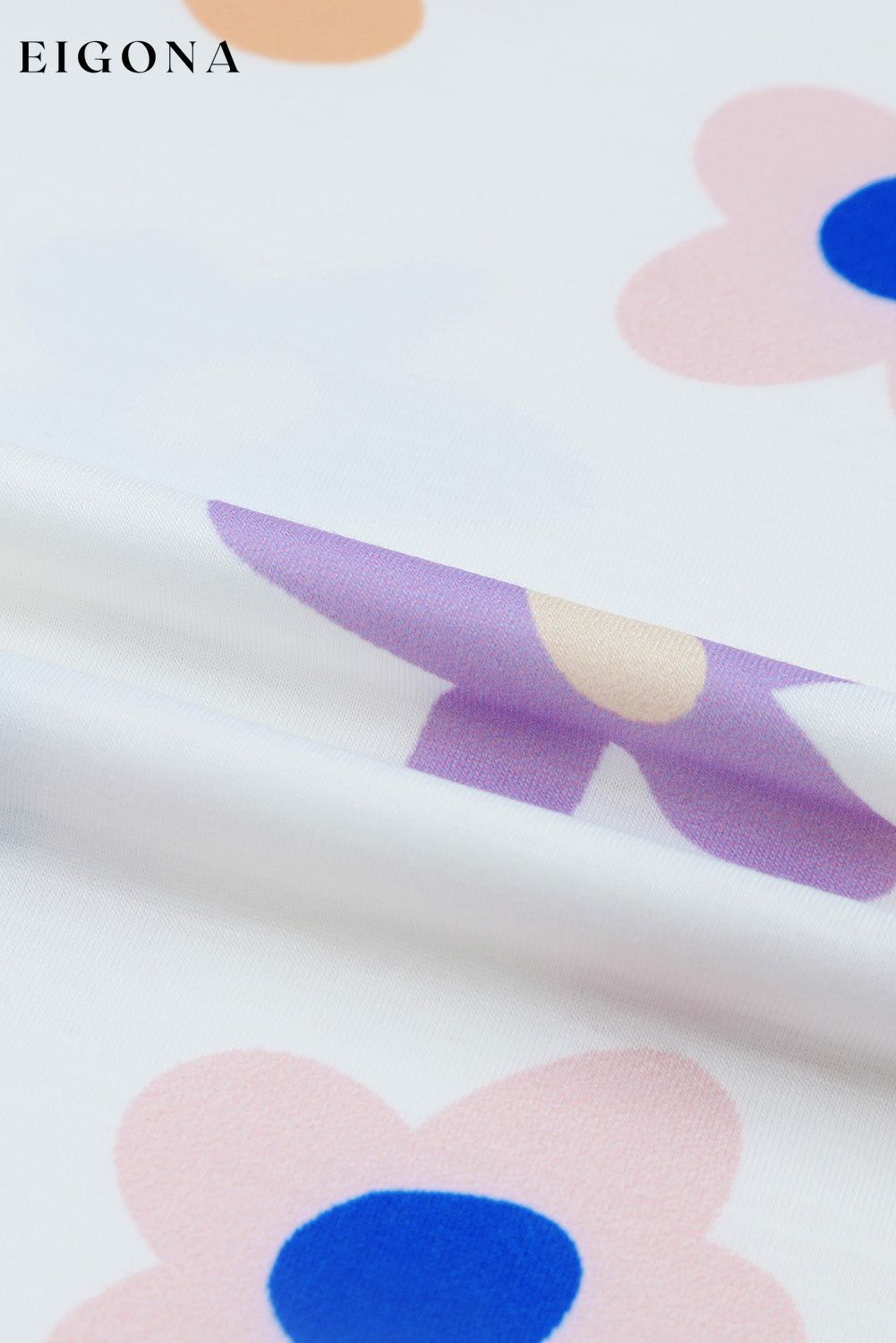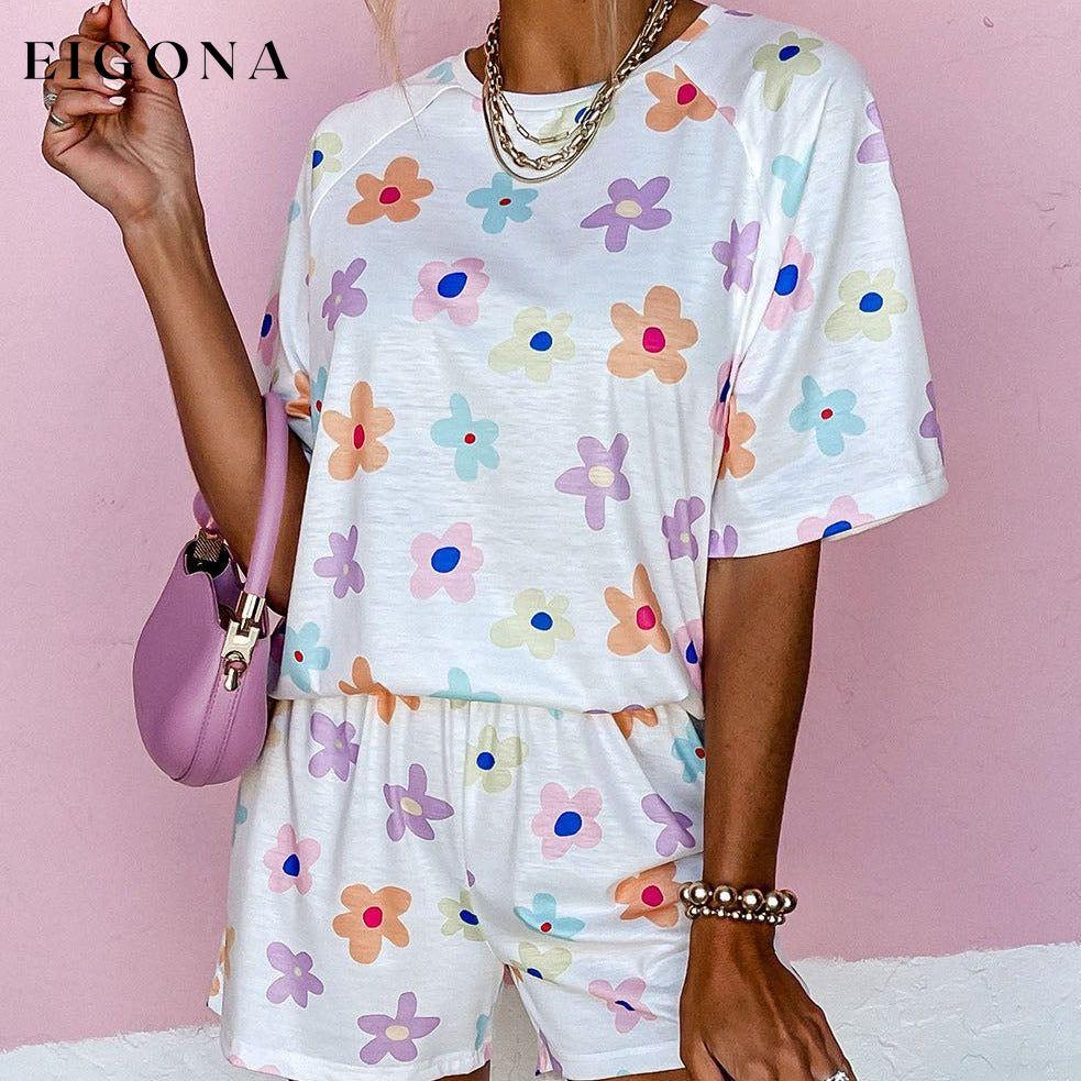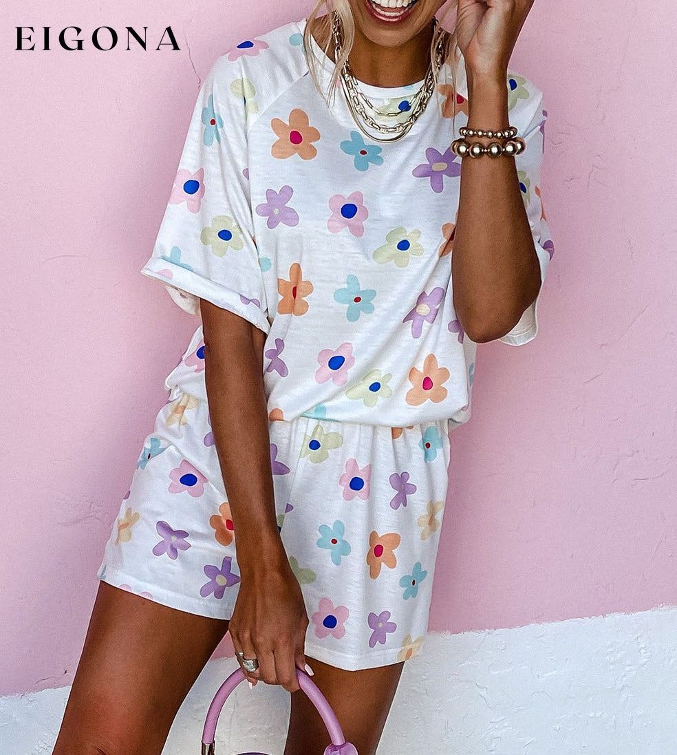 White Flower Print Short Sleeve High Waist Two Piece Shorts Set