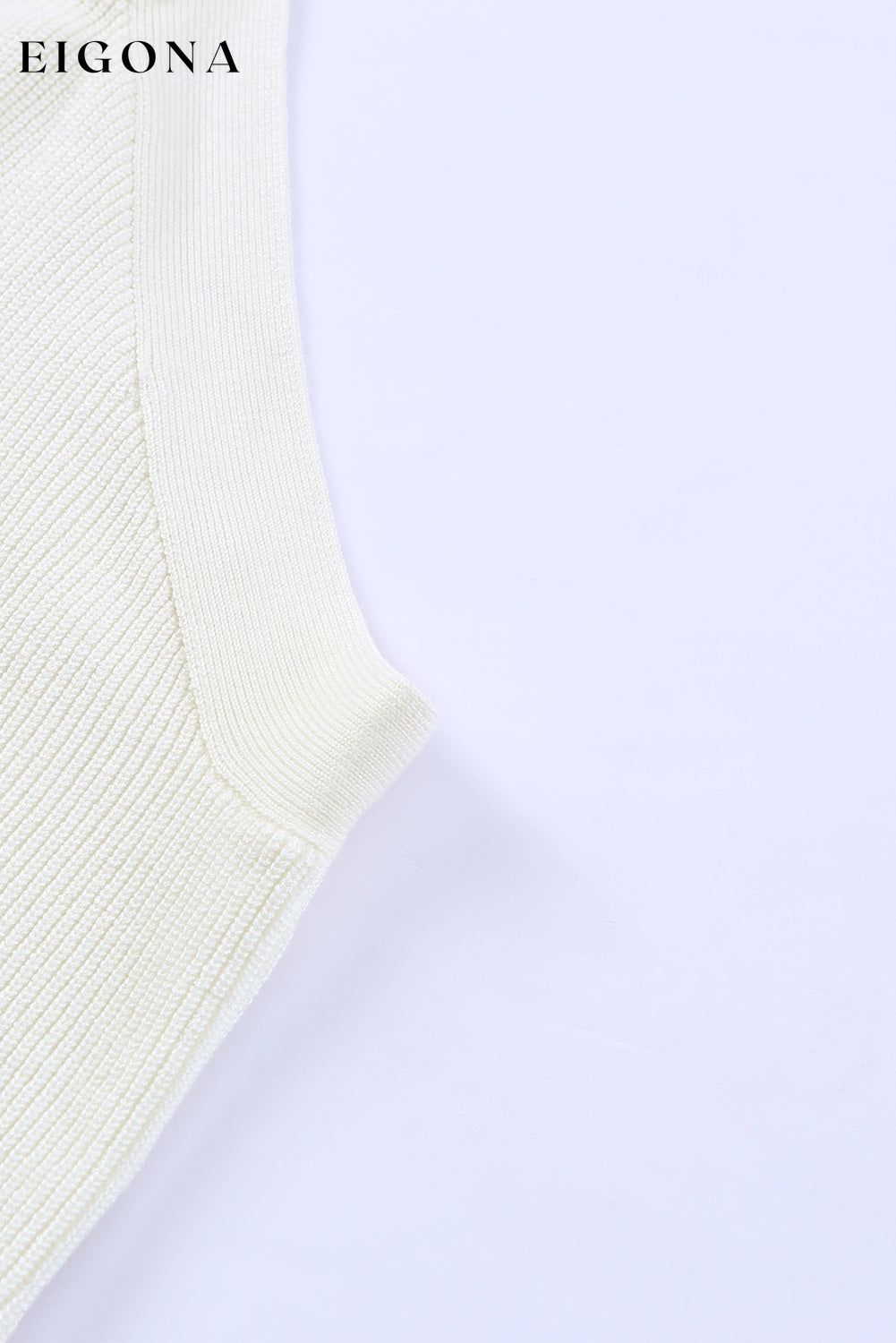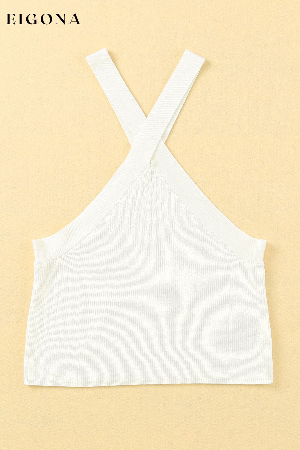 White Ribbed Knit Criss Cross Halter Neck Tank Top