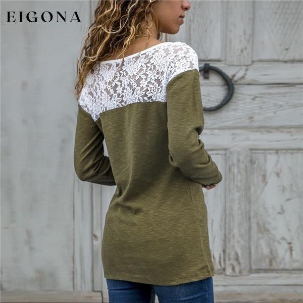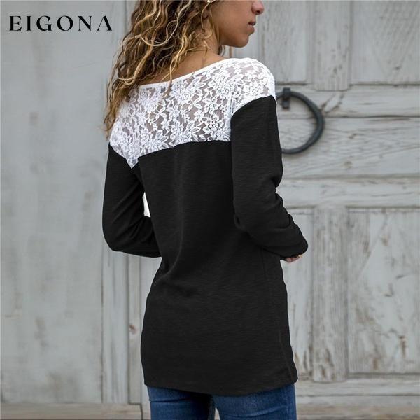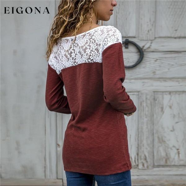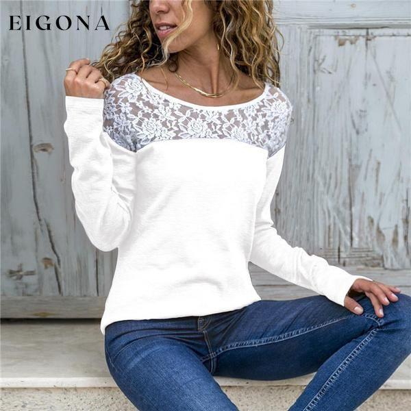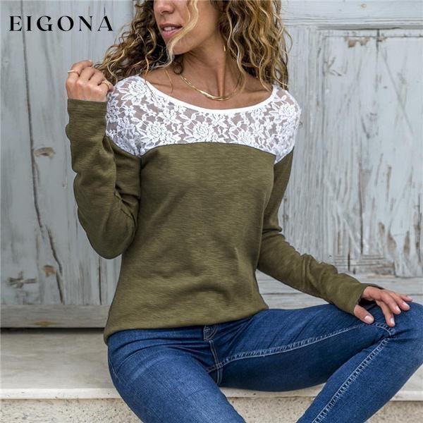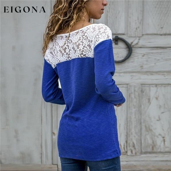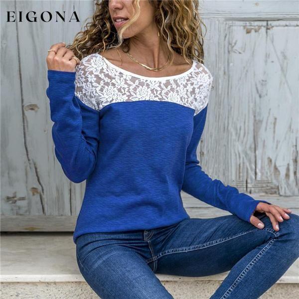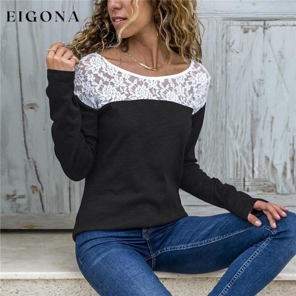 Women Round Neck Sexy Lace Casual Long-Sleeved Top