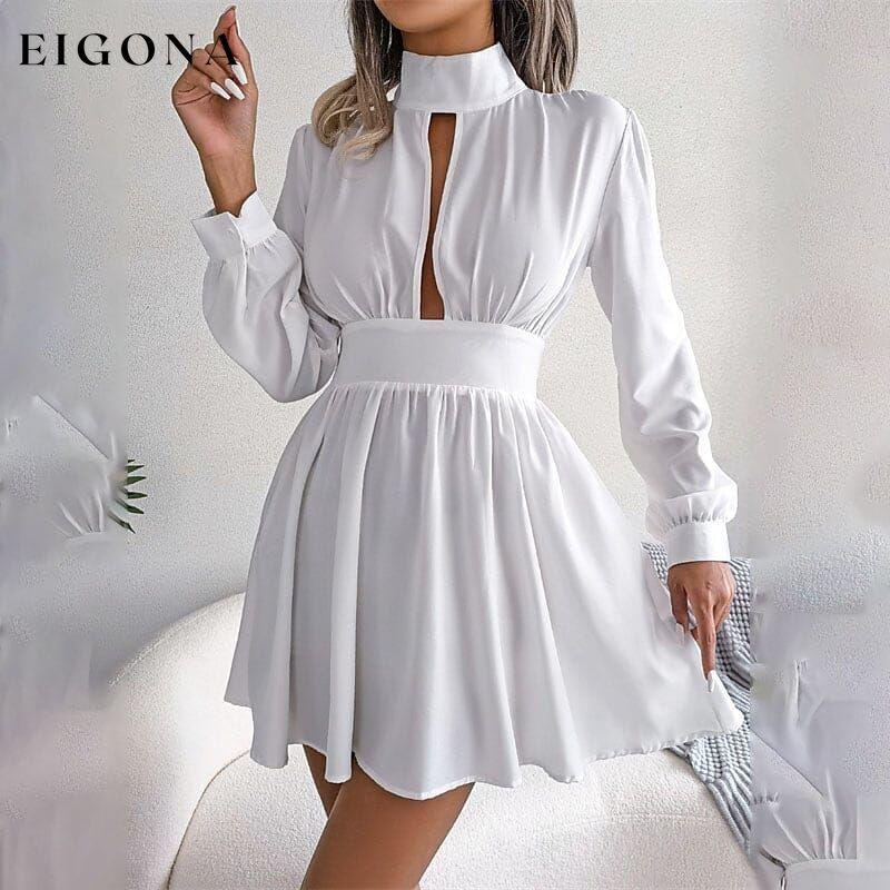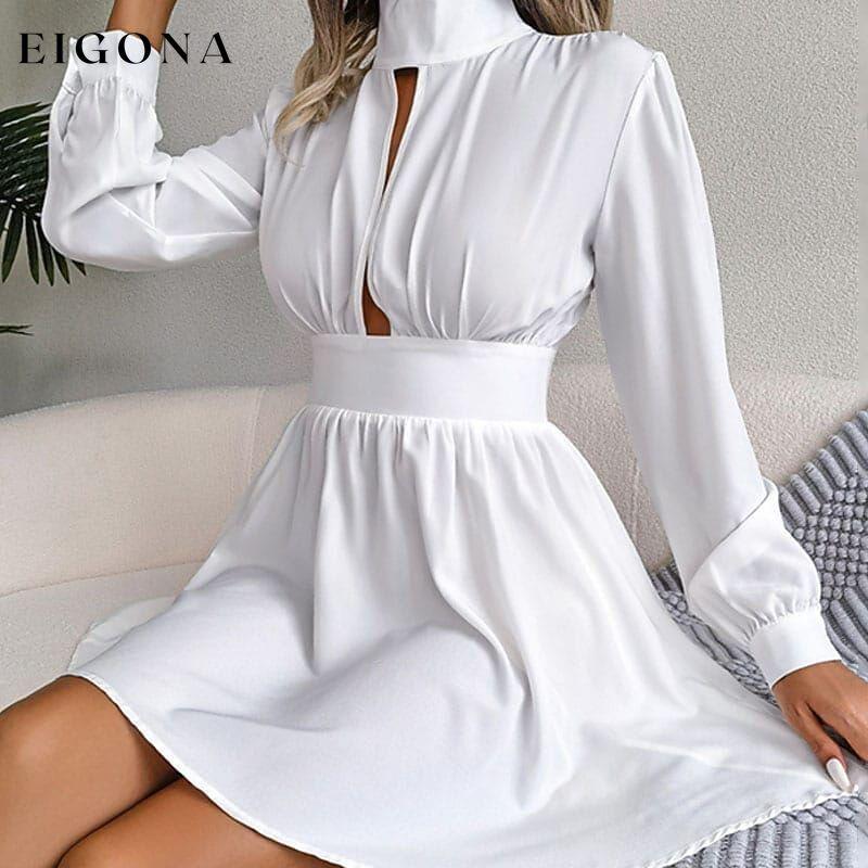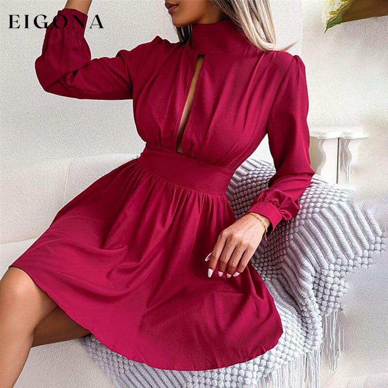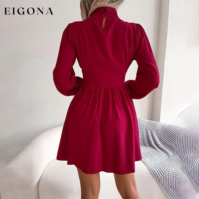 Women's A Line Dress Mini Dress Long Sleeve Pure Color Ruched Fall Winter Autumn Turtleneck Stylish Winter Dress Fall Dress.