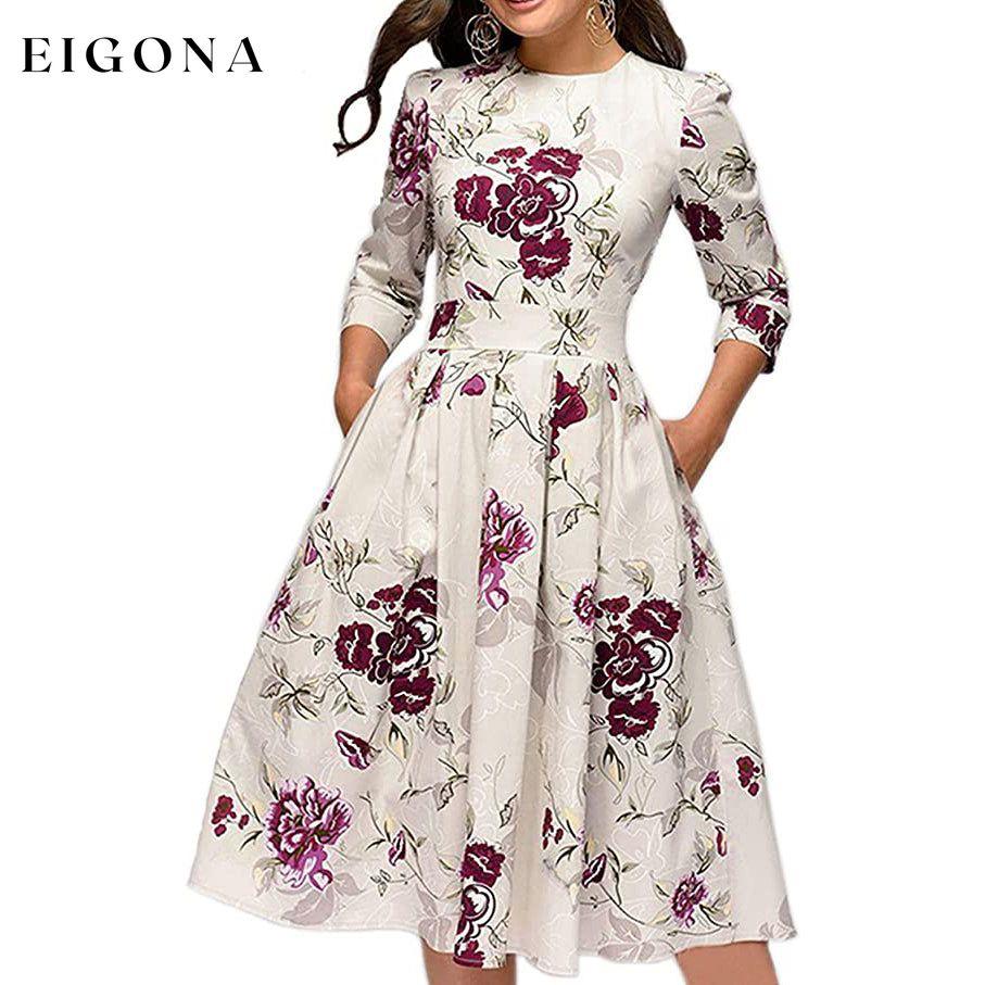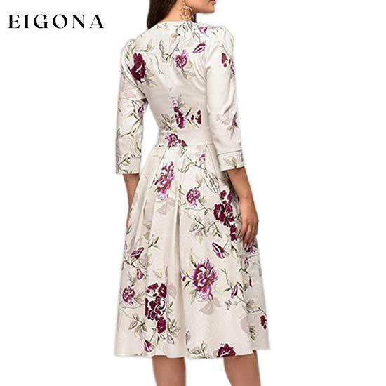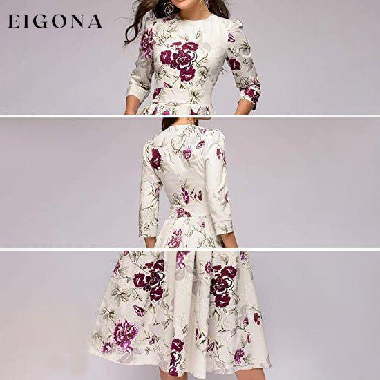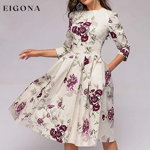 - Features: Round Neck, Back Hidden Zipper Closure, Three Quarter Sleeve, Midi Knee Length, Floral Patchwork Dress.