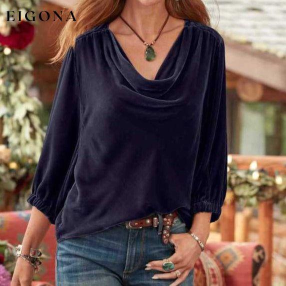Women's gold velvet three-quarter sleeve elegant plunging collar top, Womens Shirts