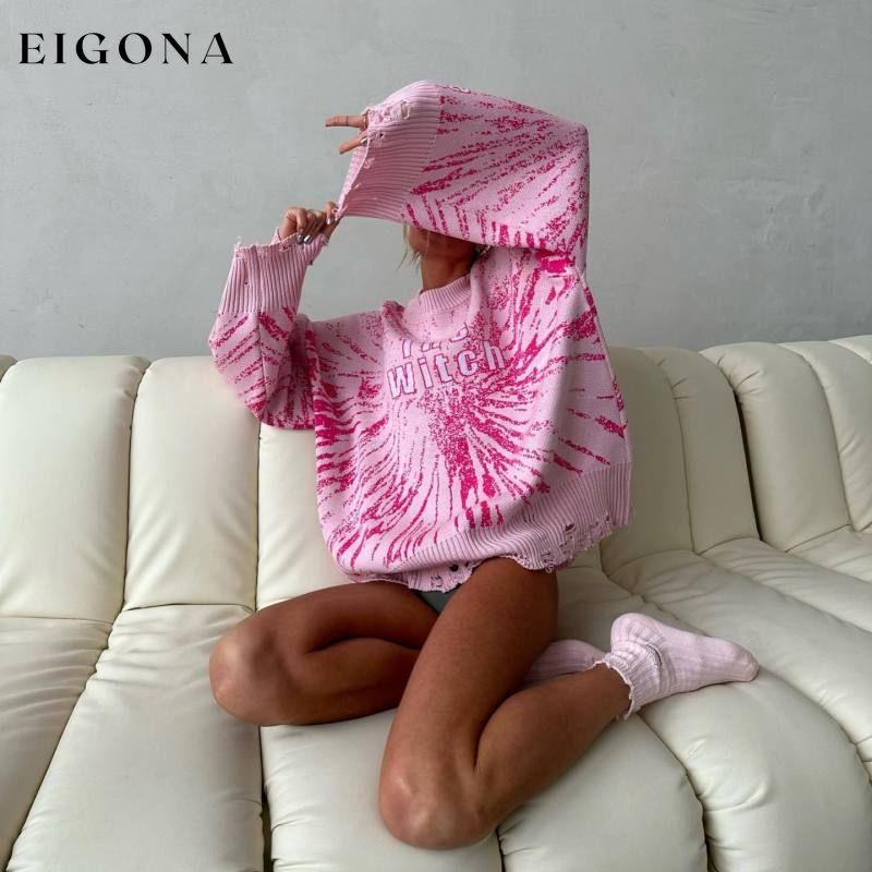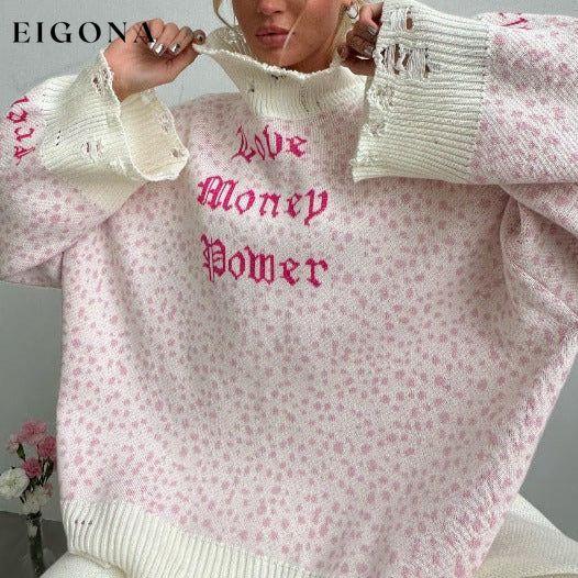 Women's loose letter embroidered holed long sleeve Turtleneck sweater