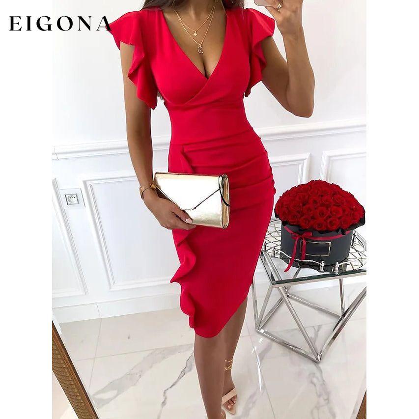 Knee Length Dress, backless, sexy deep V-neck, Party - Fashion dress when attending the party. Suitbale for dating,party,club,evening,cocktail,homecoming,prom,graduation,banquets and other formal wear.