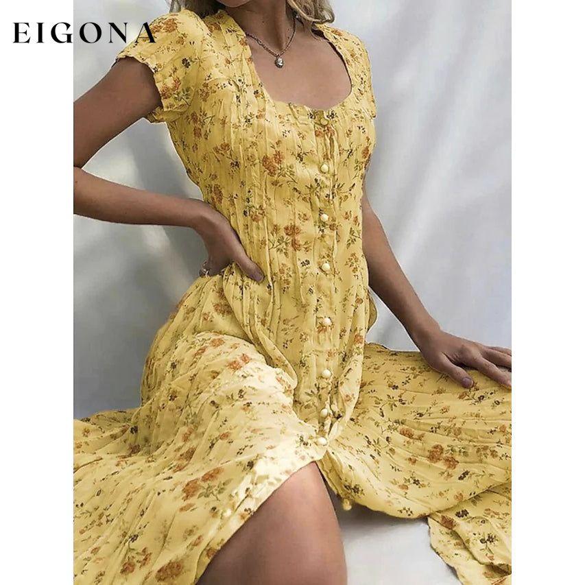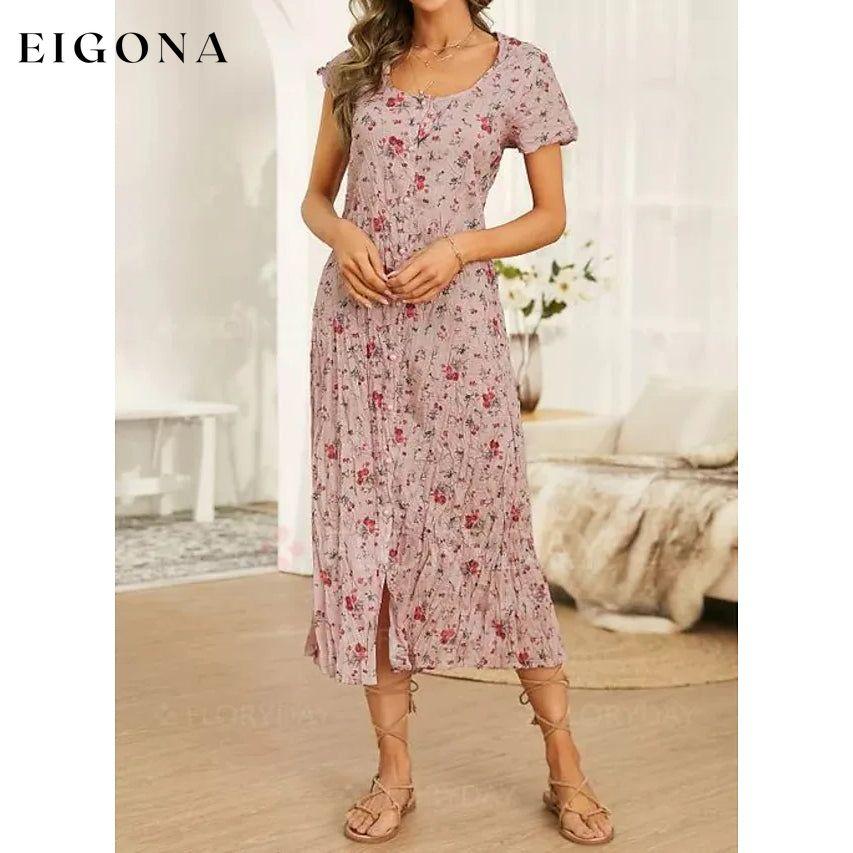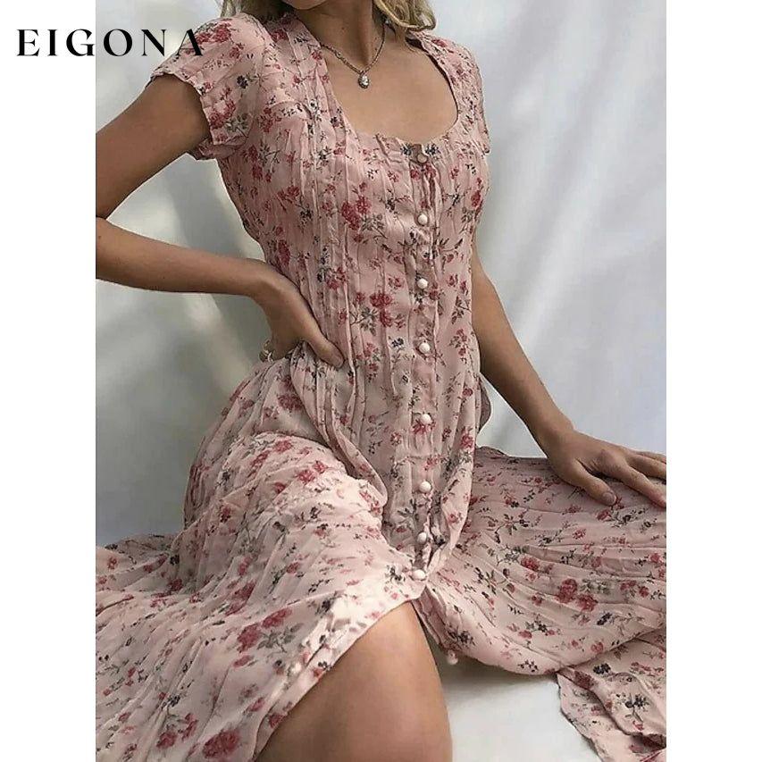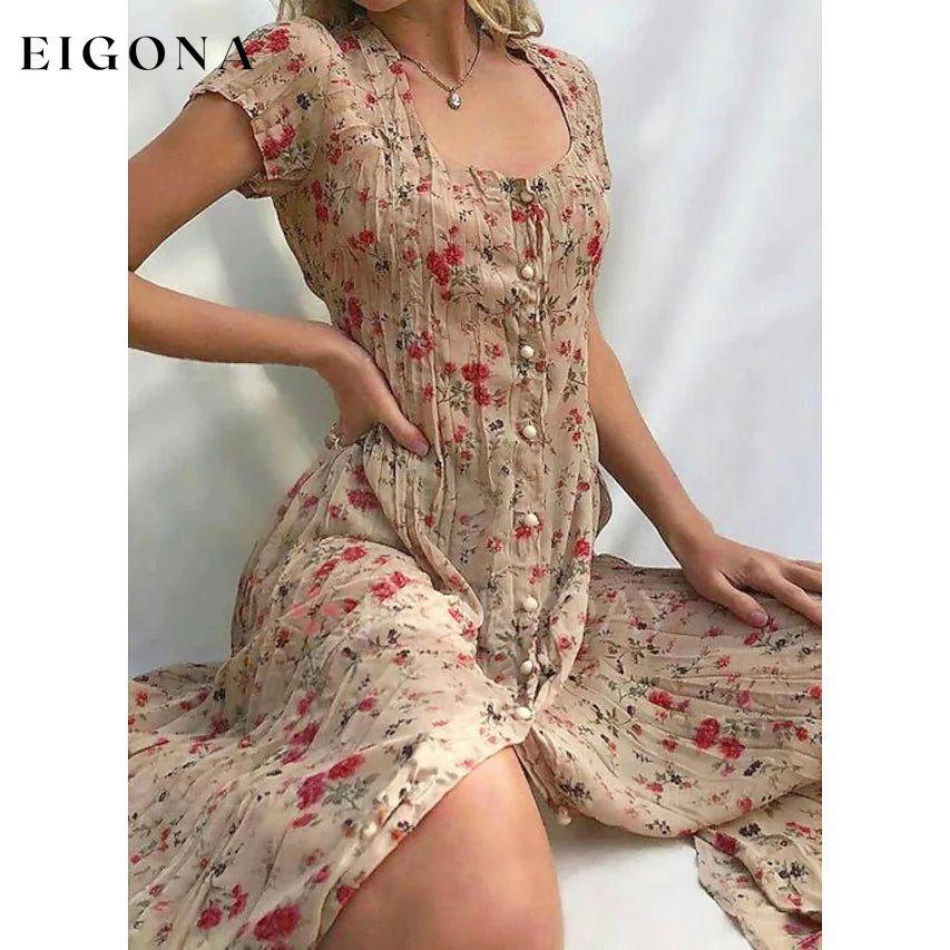 Women's Shift Dress Midi Dress Short Sleeve Floral Print Spring Summer Square Neck Hot Vintage Boho Loose.